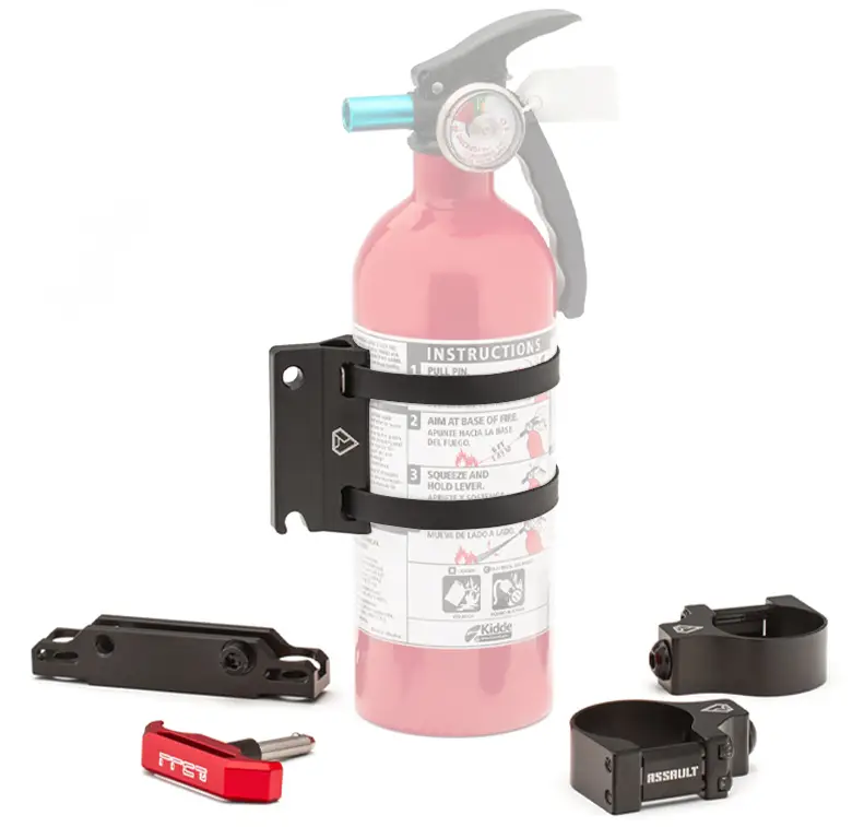 The Assault Industries Quick Release UTV Fire Extinguisher Mount is designed and manufactured with 6061 T6 aircraft-grade billet aluminum for maximum durability. The quick-release mount ensures you'll be able to react with lightning speed to any dangerous situation. With four options for cage size, Assault has a mount for most Can-Am, Kawasaki, Honda, and Polaris models—and many more. Be ready for the worst with this fire extinguisher mount.