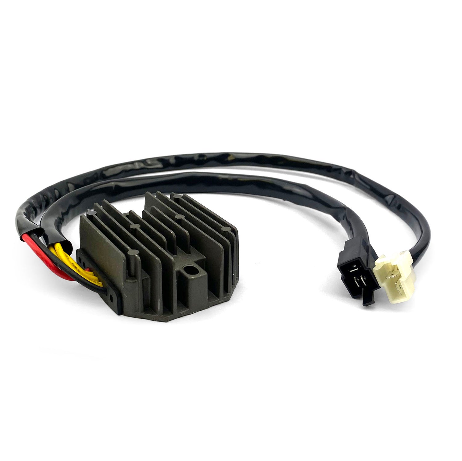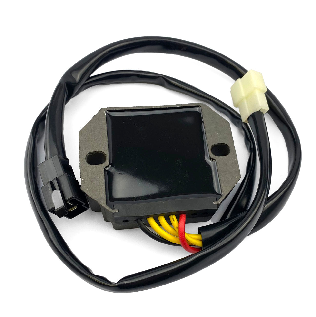 44-448.A3Voltage regulator designed for Suzuki models, ensuring stable power output and preventing battery overcharging. Features a durable construction with heat sink fins for improved cooling and reliability.