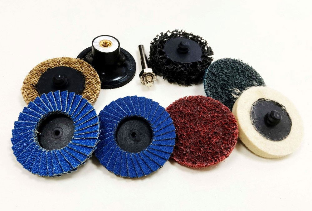 - Includes buffing disc, stripping disc (36 grit and 120 grit), and blue zirconium flap discs