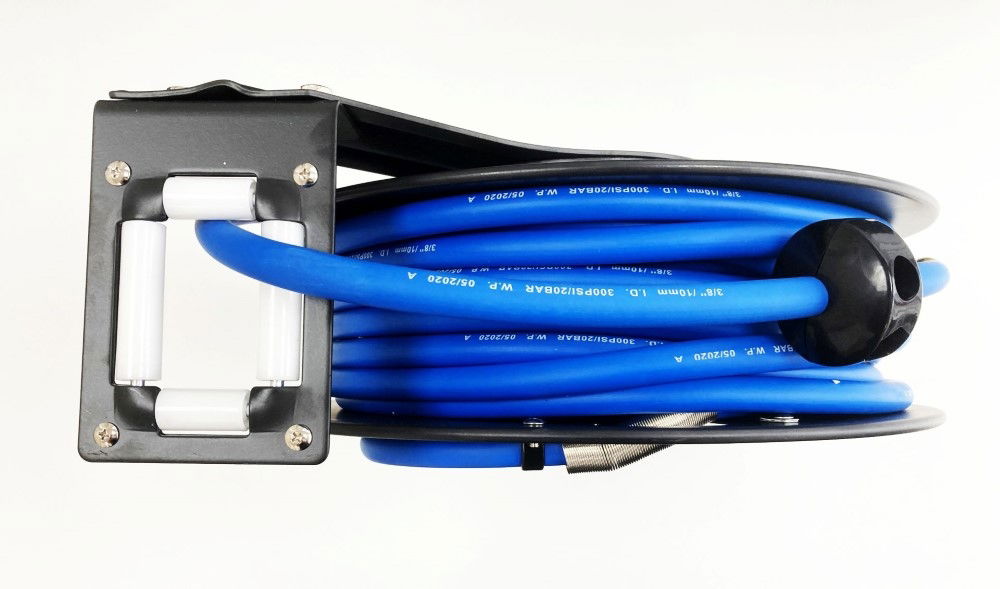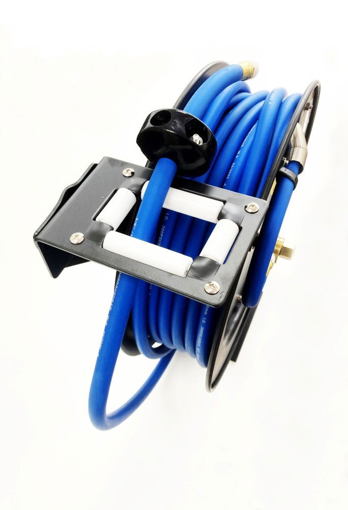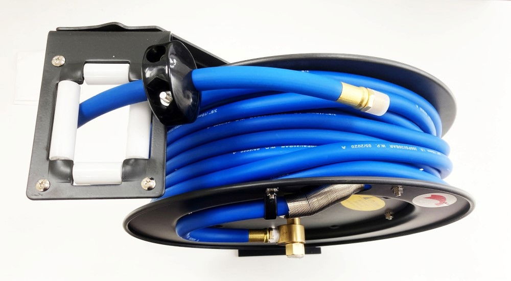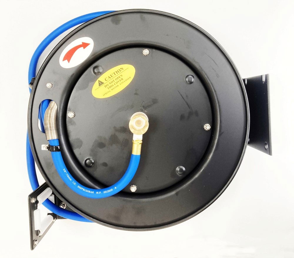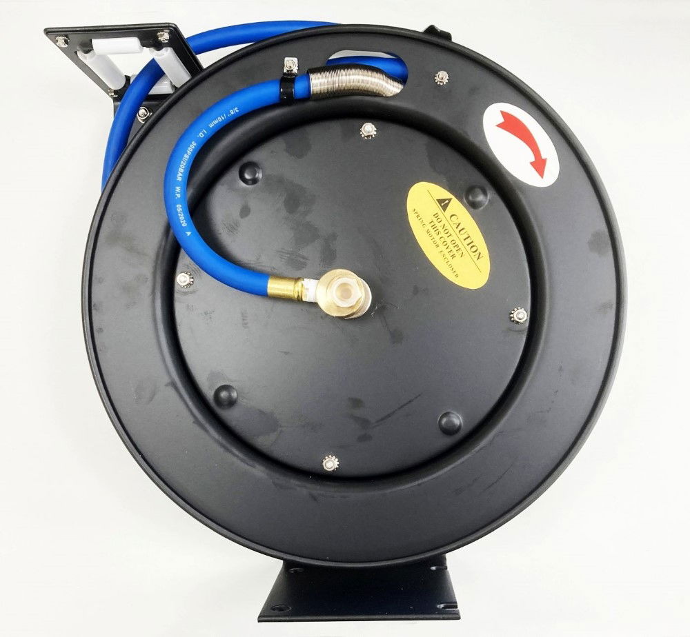 KDP-AT077This retractable air hose features a 50 ft length and is mounted on a durable steel reel. It is equipped with 3/8” BSP inlet and outlet connections and is suitable for professional use. The unit is wall mountable for convenient storage and comes packaged in a display cardboard box.