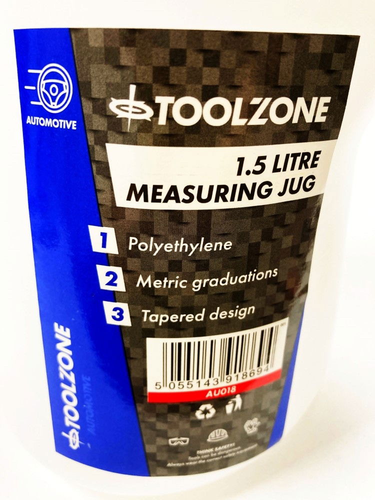 Toolzone Measuring Jug 1.5 Litre Tapered Polyethylene with Fixed Spout - Toolzone Kdpau018