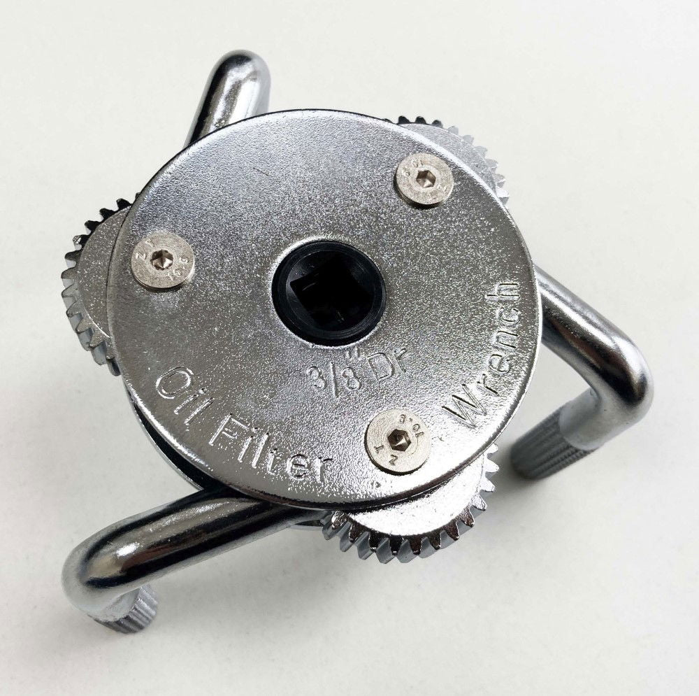 KDP-AU336This 3/8" drive oil filter wrench is designed with a 3-leg configuration and is suitable for filters ranging from 70 mm to 130 mm in diameter. It features a strong all-metal construction and is intended for removing most vehicle oil filters.