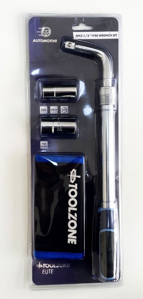 Toolzone Tyre Wrench Set 4pc 1/2 17mm 19mm 21mm 23mm - Toolzone Kdpau348