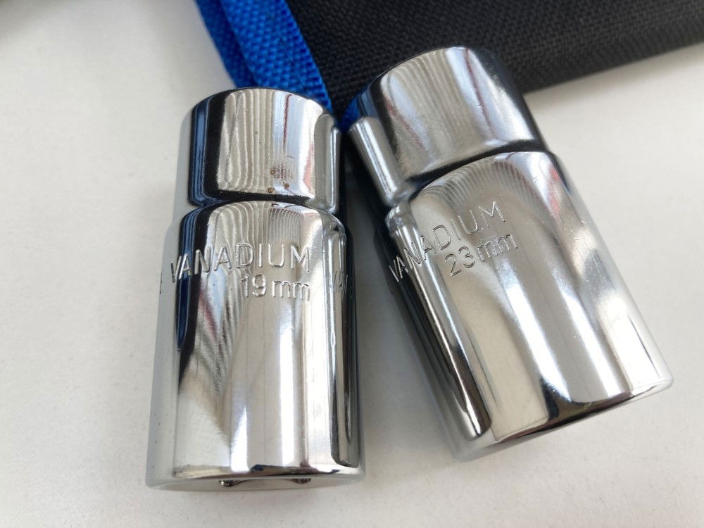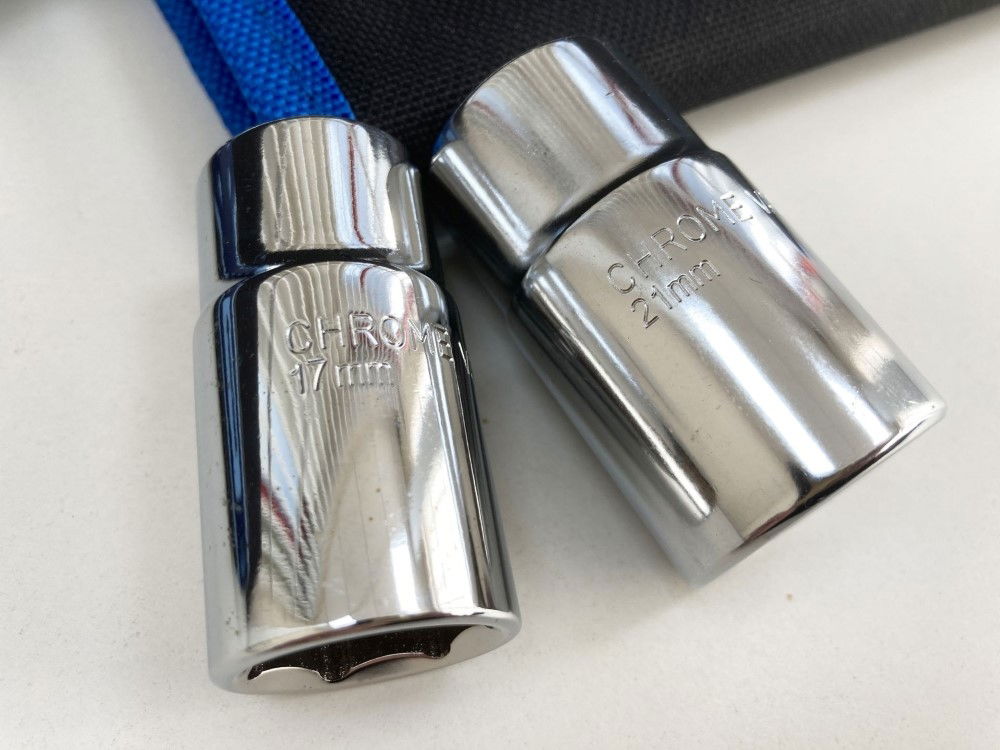 - Interchangeable sockets: 17 mm, 19 mm, 21 mm, 23 mm