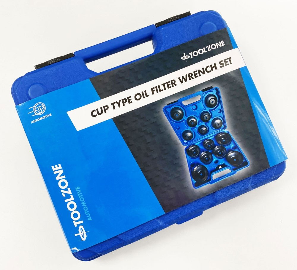 Toolzone Cup Type Oil Filter Wrench Set 16pc 65-100mm with Socket Adaptor - Toolzone Kdpau377