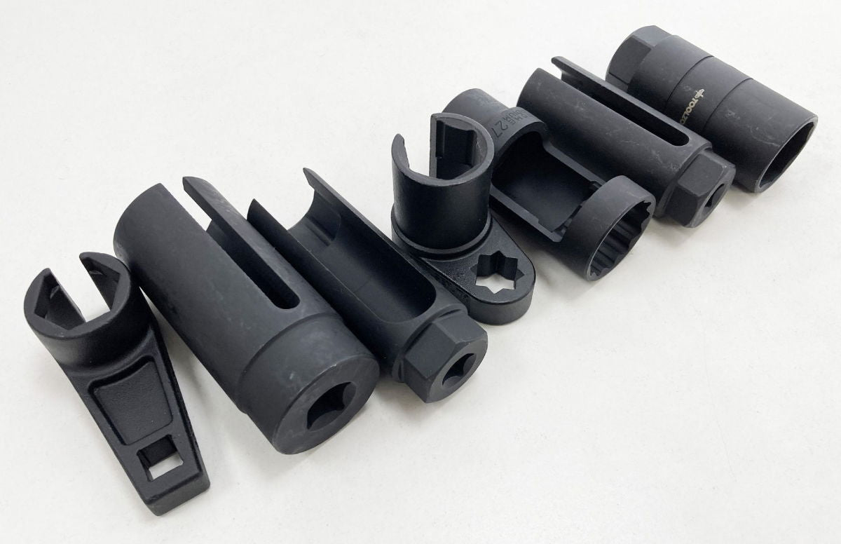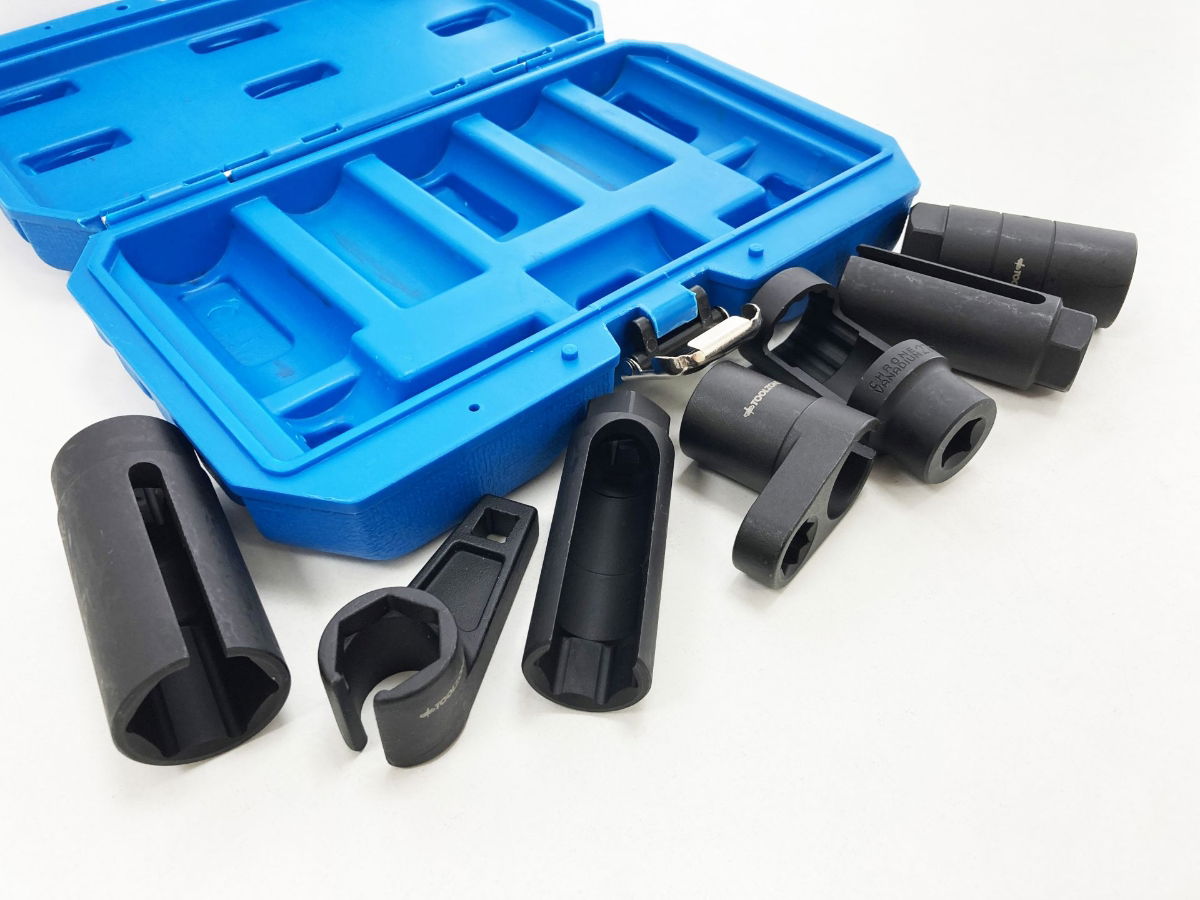 KDP-AU399This 7-piece oxygen sensor and oil sender unit socket set is designed for both oxygen sensor and oil sender unit applications. The set includes a range of sockets suitable for 1/2 inch and 3/8 inch drives, with various lengths and slot sizes. A storage case is included for organization and transport.