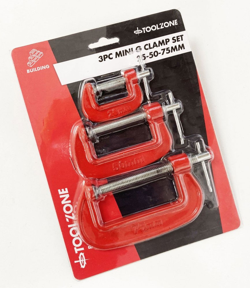 Toolzone G Clamp Set 3pc Mini 25mm 50mm 75mm - Toolzone Kdpcl004