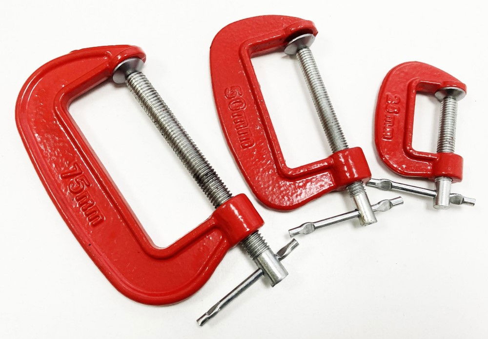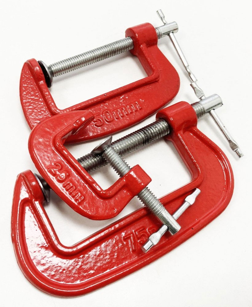 - Set includes three G clamps: 25 mm (1"), 50 mm (2"), 75 mm (3")