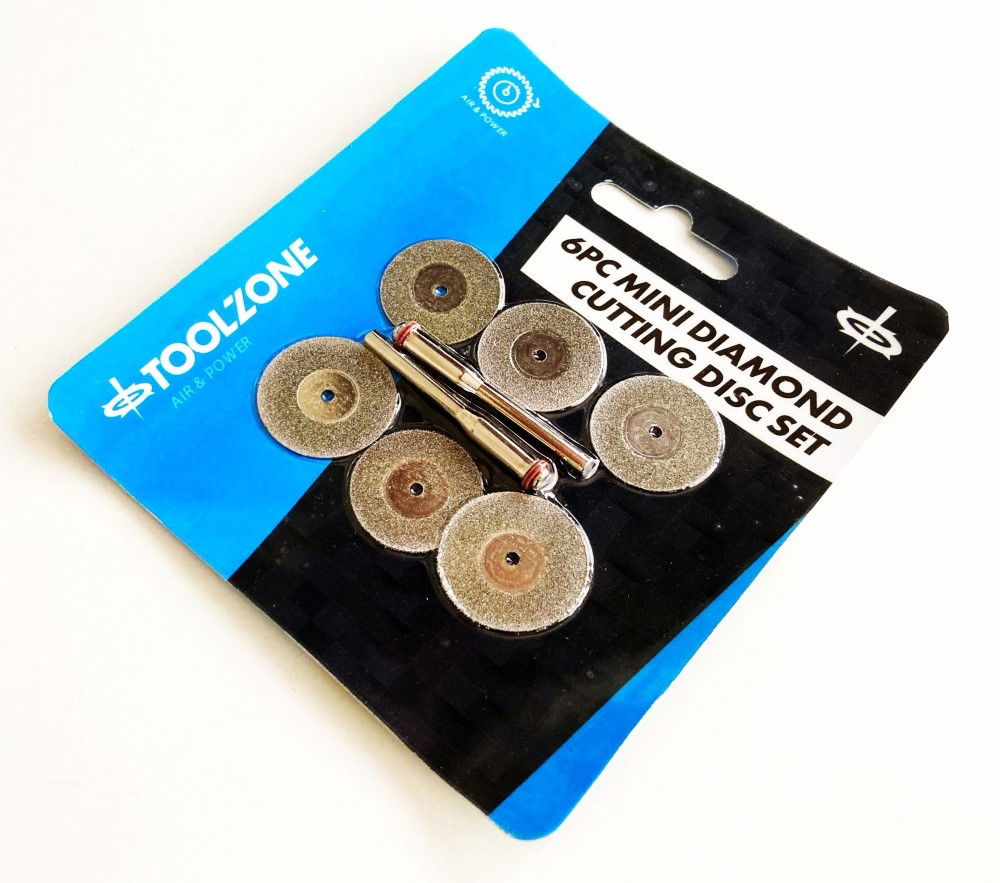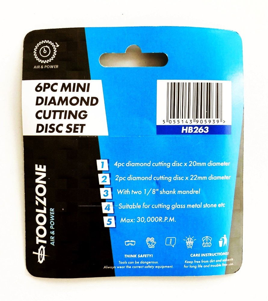 Toolzone Mini Diamond Cutting Discs 6pc 20mm 22mm 3.2mm Shank 0.65mm Thickness - Toolzone Kdphb263