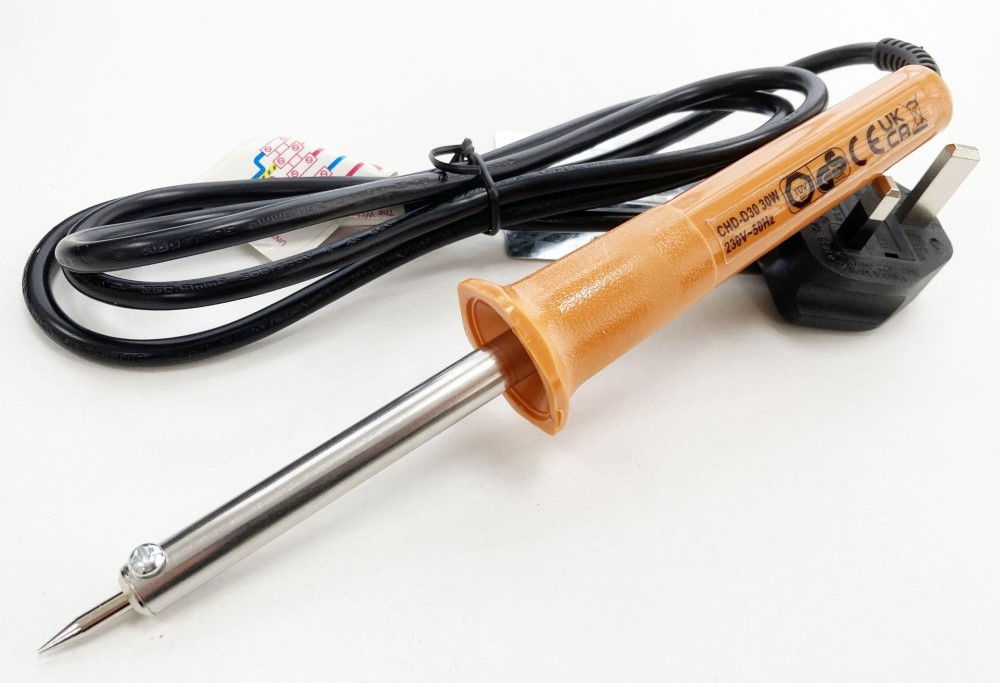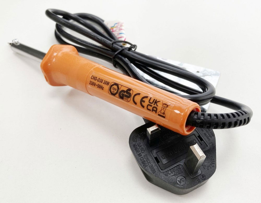 KDP-HB278This 30-watt soldering iron is designed for use on electronics and small components. It features a screwdriver type tip and is equipped with a UK BS plug and 1 meter of cable. The soldering iron operates on 220V/50Hz and is CE, GS, TUV, and RoHS approved.