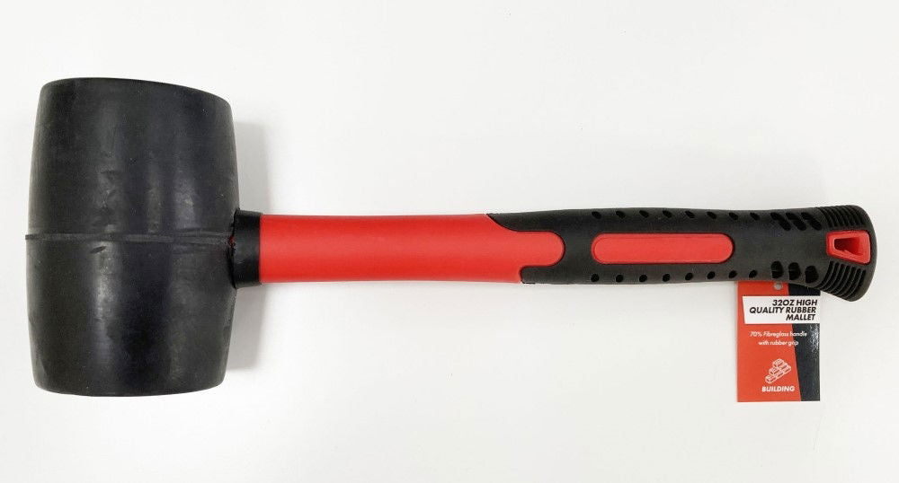 KDP-HM010This 32 oz rubber mallet is constructed with a 70% fibre handle and features a two-component comfort grip. The mallet has a black and red design and is engineered for tasks requiring controlled striking.