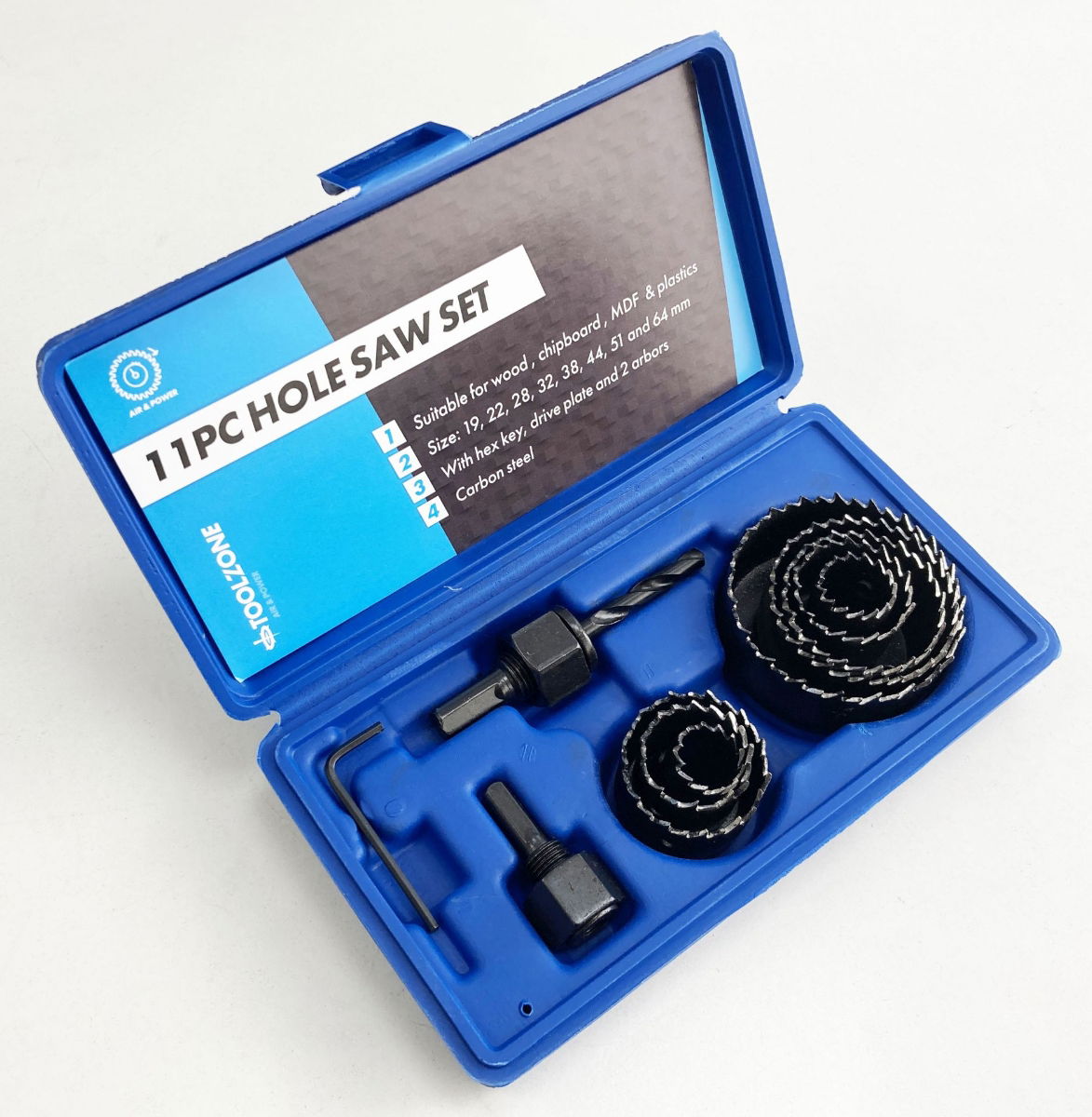 Toolzone Hole Saw Set 11pc Carbon Steel Sizes 19-64mm - Toolzone Kdphs032