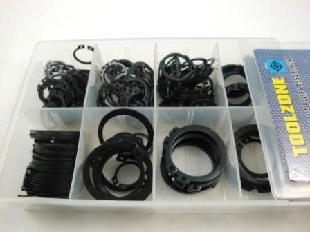 - 250 external circlips in assorted metric sizes