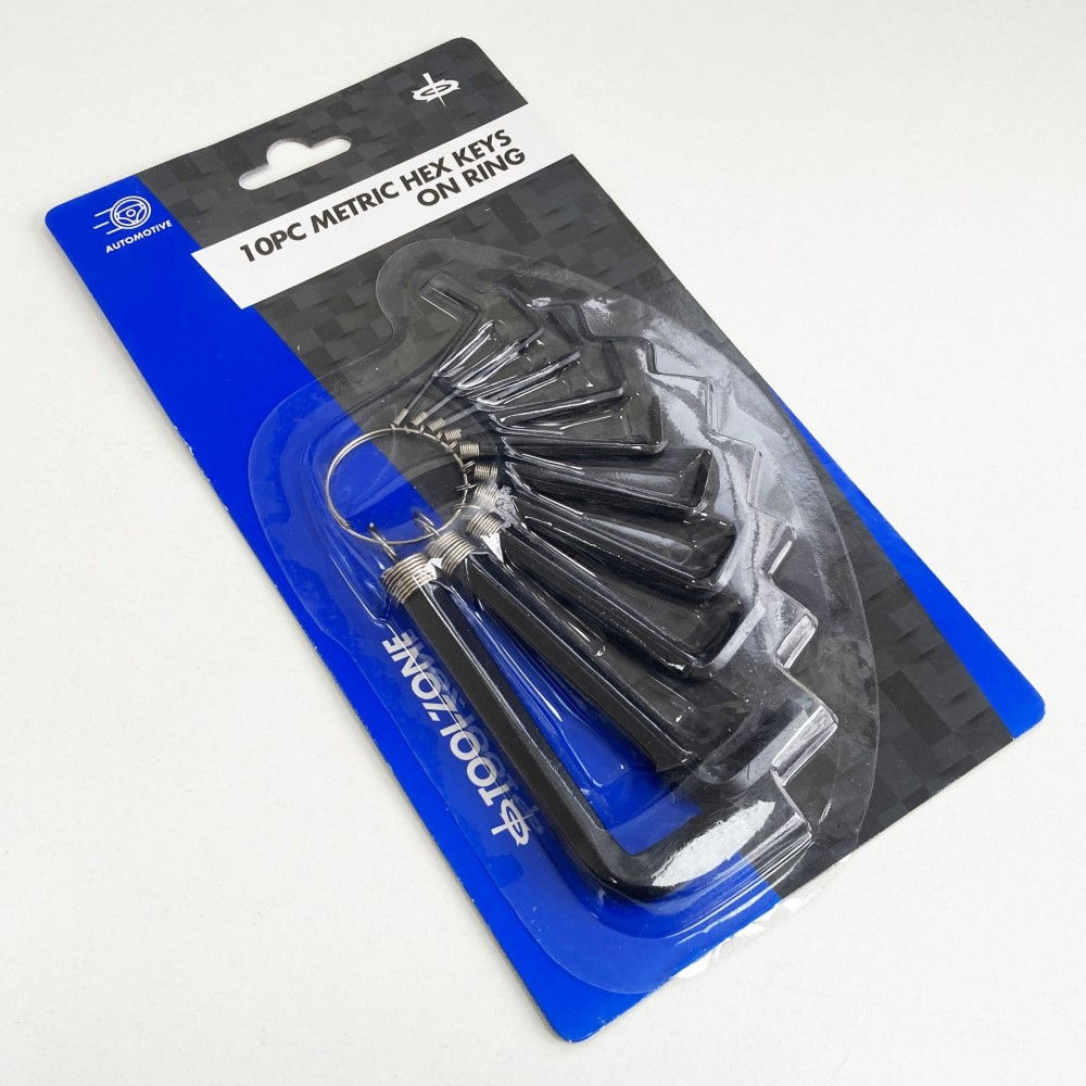 Toolzone Hex Key Set Metric 10pc 1.5-10mm on Ring Carbon Steel - Toolzone Kdphx018