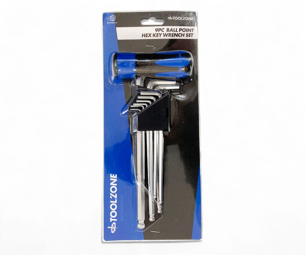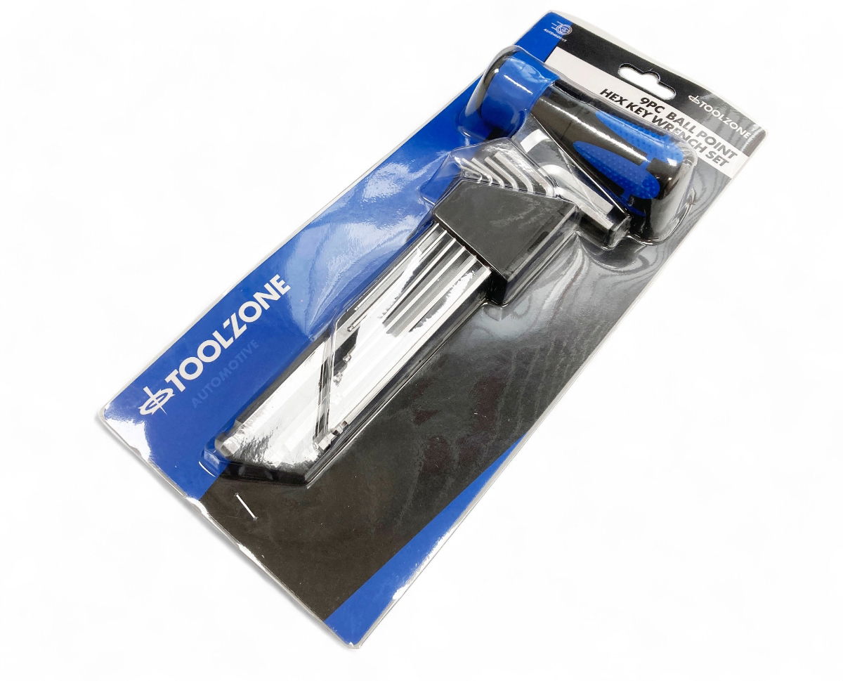 Toolzone Hex Key Set Ball End Metric 9pc with Handle Chrome Alloy - Toolzone Kdphx032
