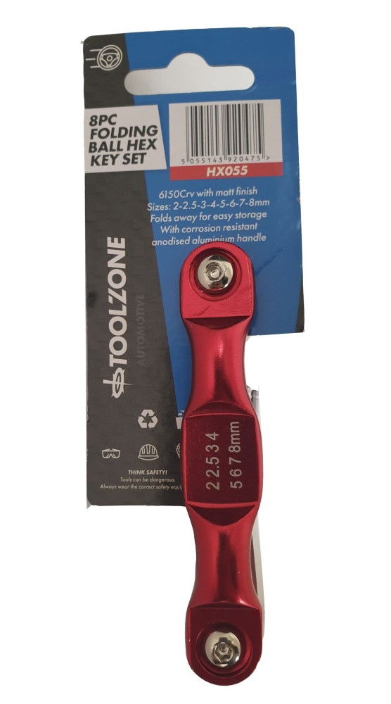 Toolzone Hex Key Set Ball End Metric 8pc Folding Aluminium Frame - Toolzone Kdphx055
