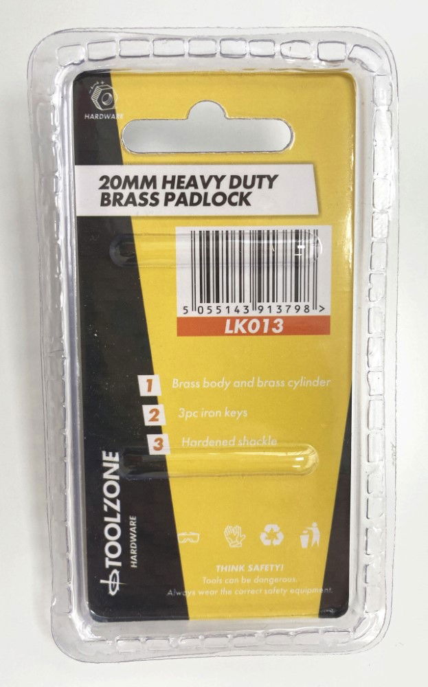 Toolzone Padlock Heavy Duty Brass 20mm with 3 Keys - Toolzone Kdplk013