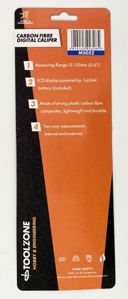 KDP-MS052This carbon fibre digital vernier caliper offers a measuring range of 0–150 mm (0–6 inches). Constructed from strong carbon fibre composite, it is lightweight and durable, supporting both internal and external measurements.