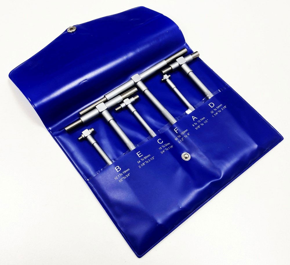 KDP-MS059This 6-piece telescoping gauge set is made from stainless steel and is designed for quick and accurate internal measurements ranging from 5/16 inch to 6 inches. Each gauge features a spring-loaded, self-centering plunger and a twist knob for locking measurements. The set is provided in a vinyl case.