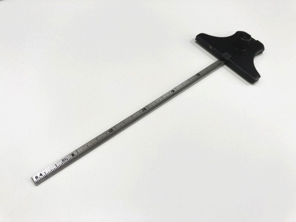 KDP-MS077This 6-inch depth gauge is designed for quick and efficient measurement of depths. It offers both metric and imperial markings and can be adjusted and secured in place using a thumb nut.