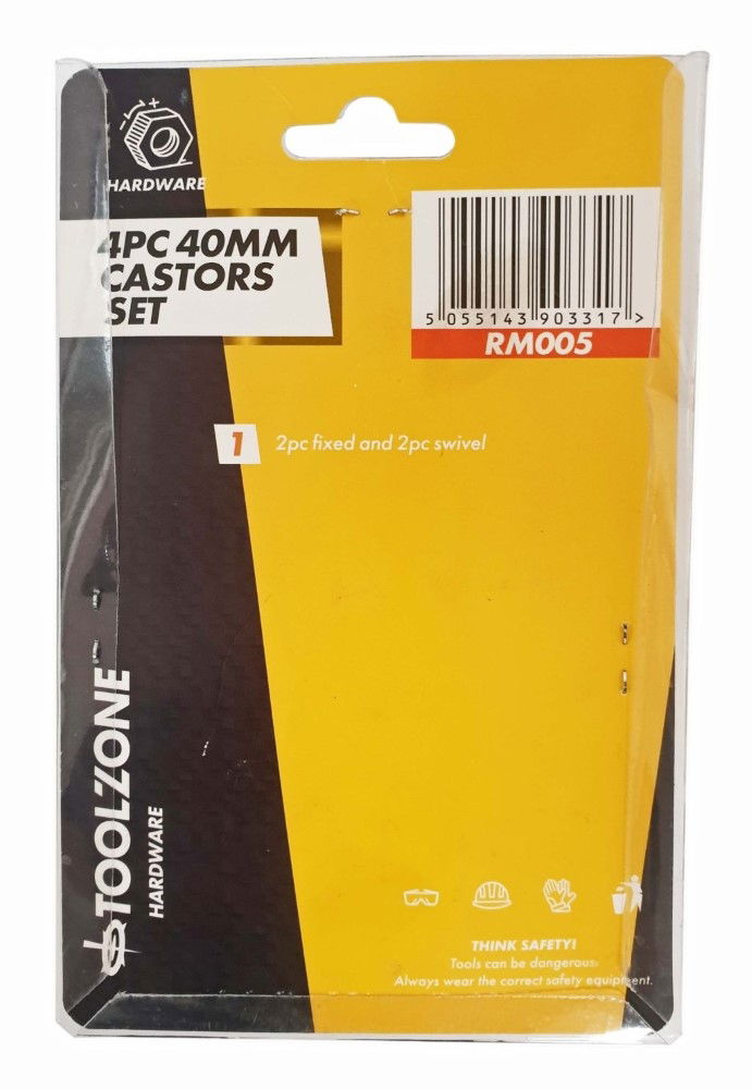 Toolzone Castor Wheels Set 4pc 40mm 2 Swivel 2 Fixed Polypropylene - Toolzone Kdprm005