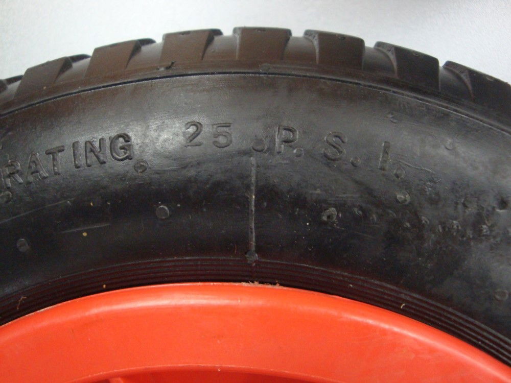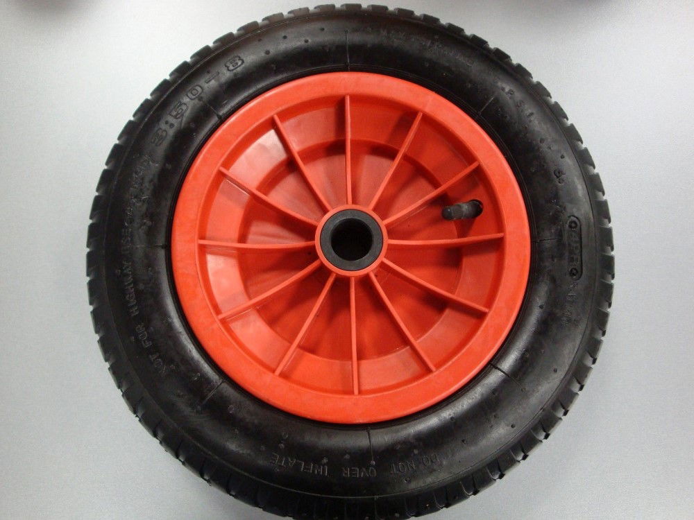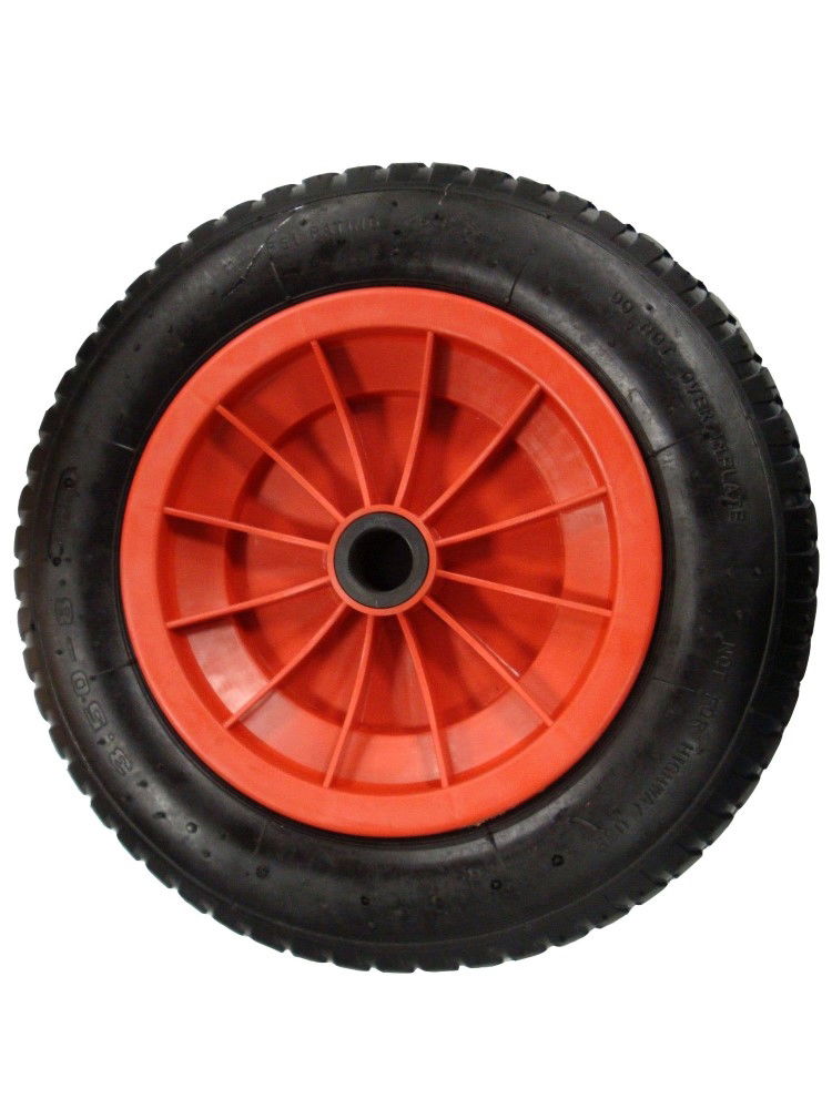 KDP-RM026This 350 mm x 85 mm wheelbarrow wheel features a 4-ply construction and is suitable for a range of wheelbarrow applications. It is equipped with a 25 mm bore and is designed for a maximum inflation pressure of 25 psi.