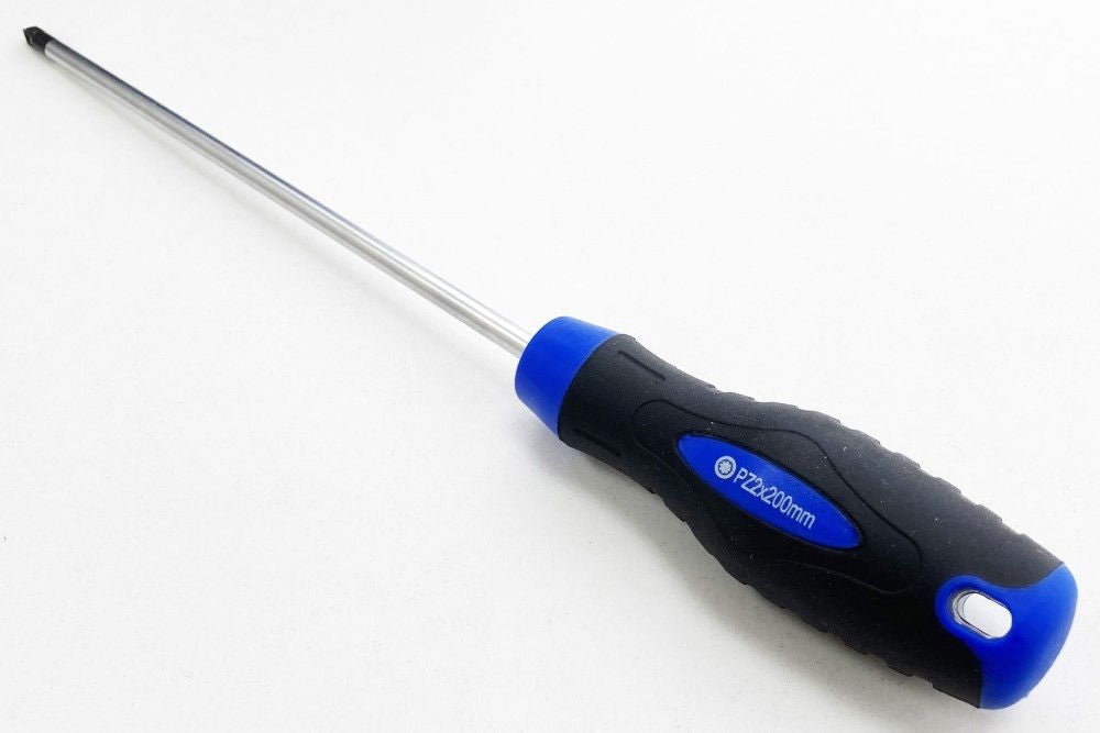 KDP-SD107This Pozi 2 screwdriver features a 200 mm (8 inch) blade made from chrome vanadium steel with a satin finish. It is equipped with a black and blue comfort grip handle designed for ease of use.