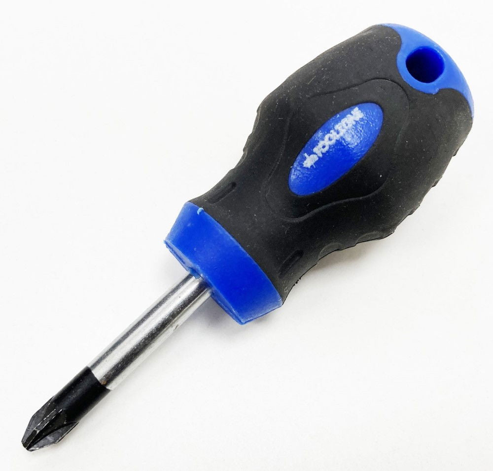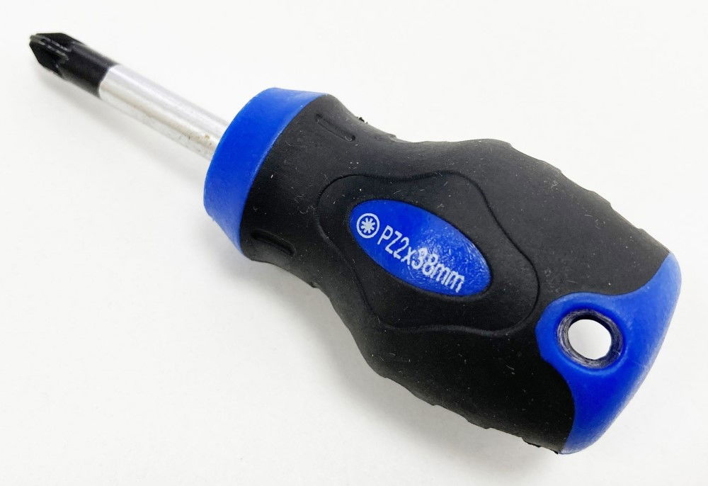 KDP-SD146This Pozi 2 x 38 mm stubby screwdriver is made from chrome vanadium steel with a satin finish, designed for durability and corrosion resistance. It features a black and blue comfort grip handle for ease of use in confined spaces.
