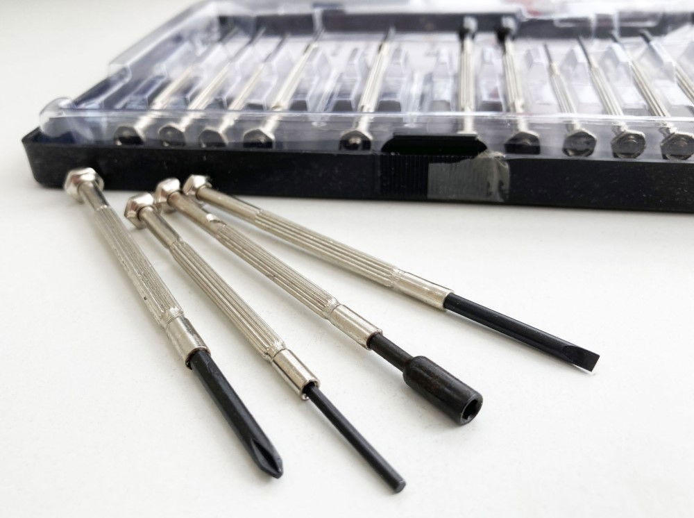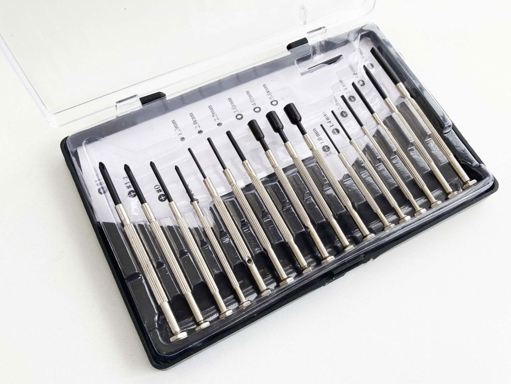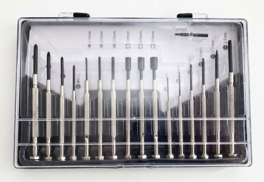 KDP-SD212This 16-piece precision screwdriver set is equipped with a range of Phillips, slotted, hex, and star drivers. All tools are organized in a plastic storage case for convenient access.