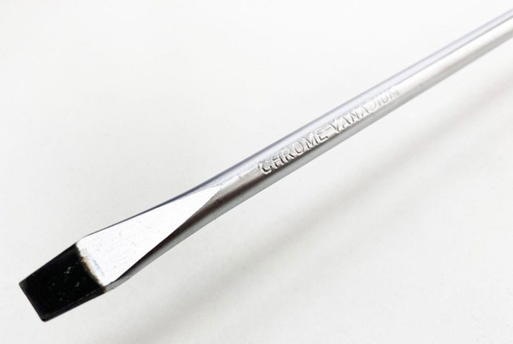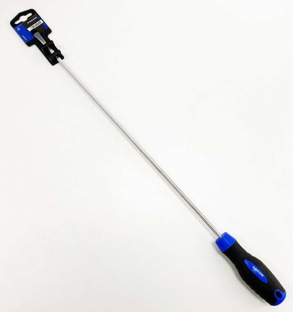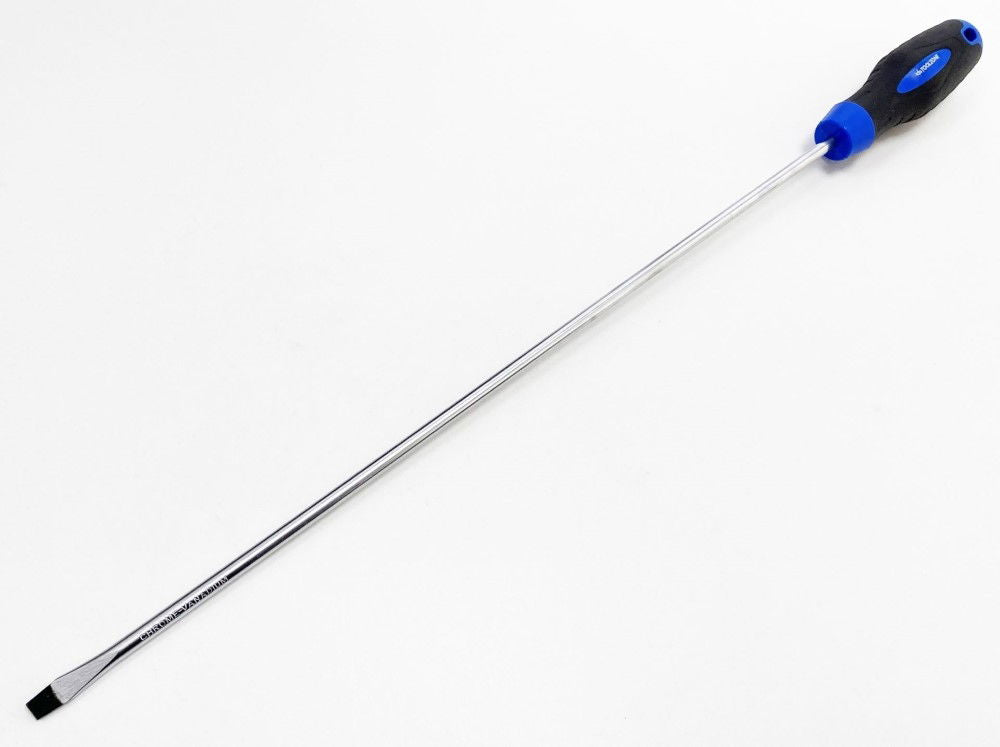 KDP-SD257This screwdriver is equipped with a 400 mm long blade and a 6 mm slotted tip, suitable for accessing screws in deep or hard-to-reach areas. It is made with a chrome vanadium blade and features a black and blue comfort grip handle.