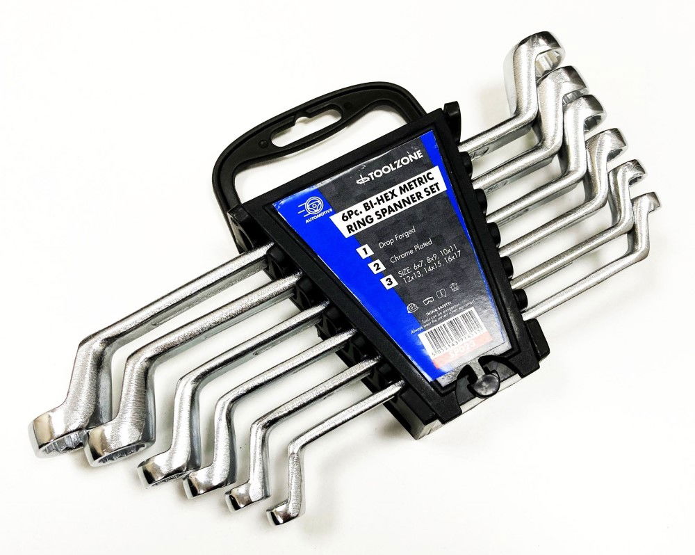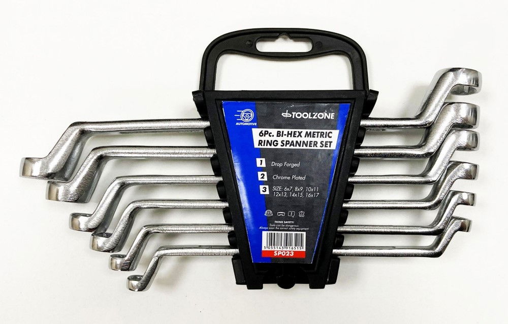 Toolzone Ring Spanner Set 6pc 6x7mm to 16x17mm Drop Forged Chrome Plated - Toolzone Kdpsp023