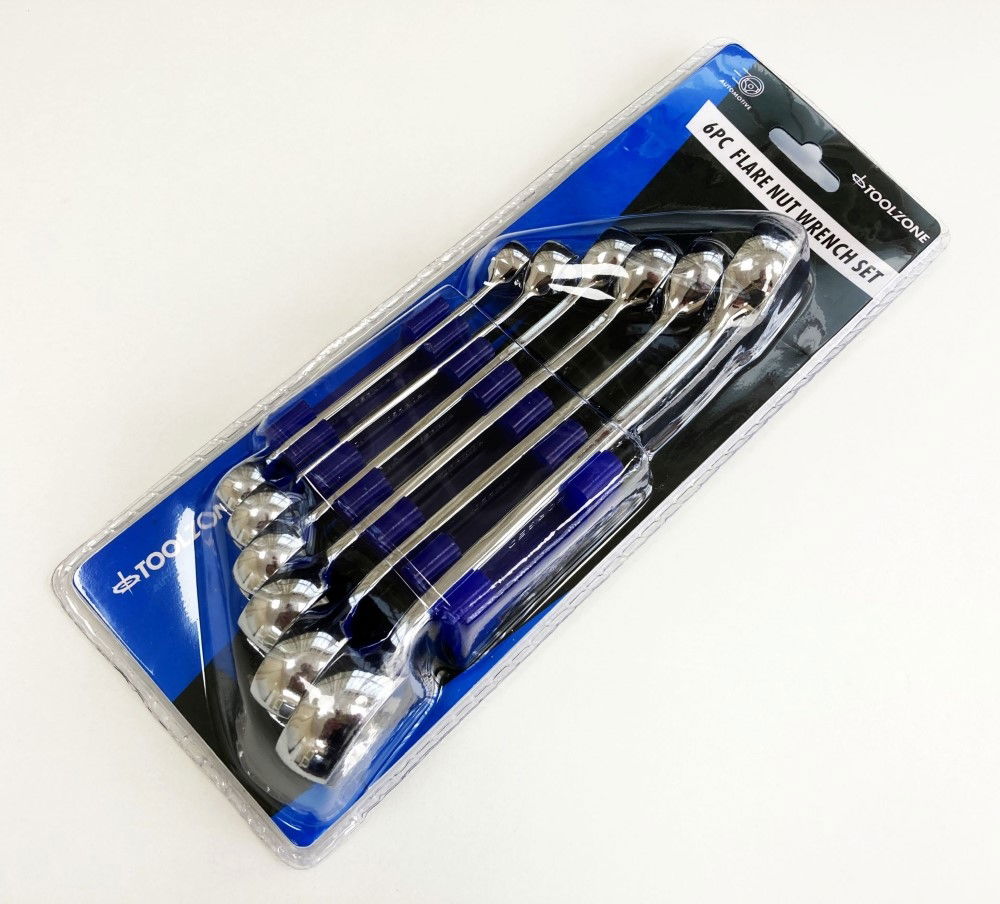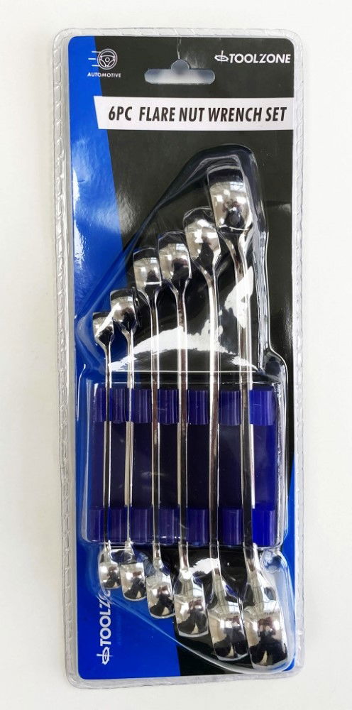 Toolzone Flare Nut Wrench Spanner Set 6pc 6x8mm to 22x24mm Chrome Vanadium Polished - Toolzone Kdpsp034