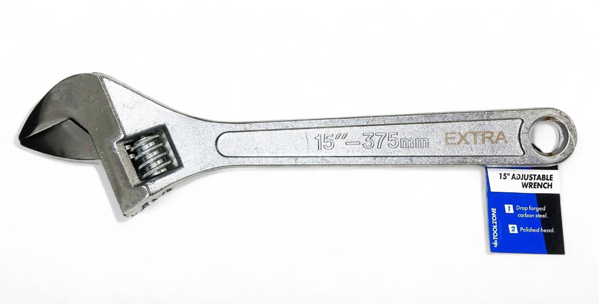Toolzone Adjustable Spanner 15 Max Jaw 45mm Drop Forged Chrome Plated - Toolzone Kdpsp046