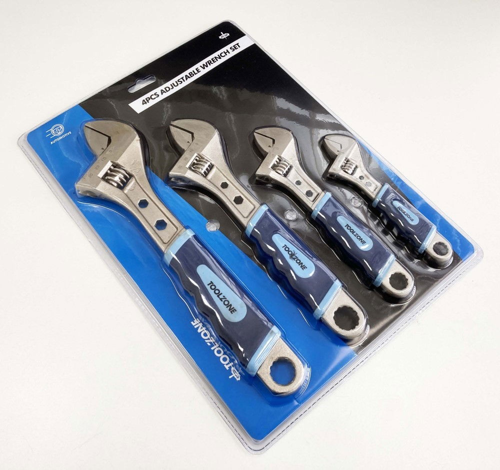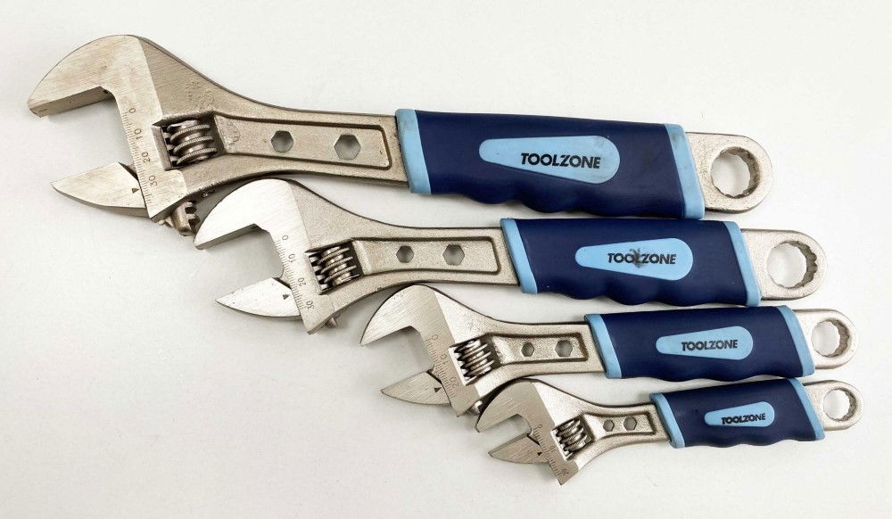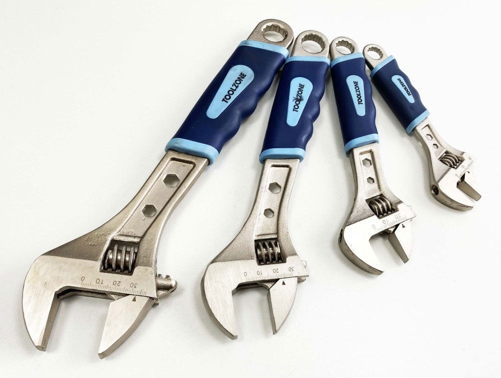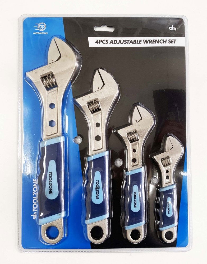 Toolzone Adjustable Spanner Set 4pc 6 8 10 12 Soft Grip Handles - Toolzone Kdpsp055
