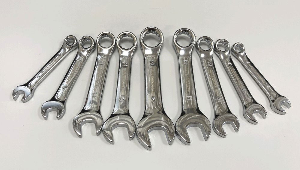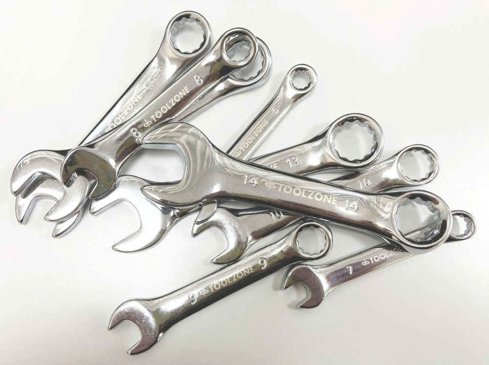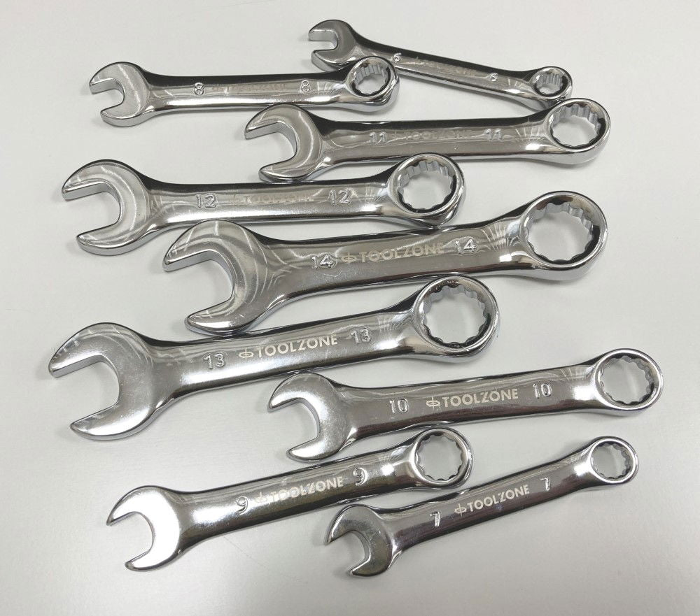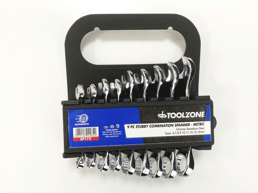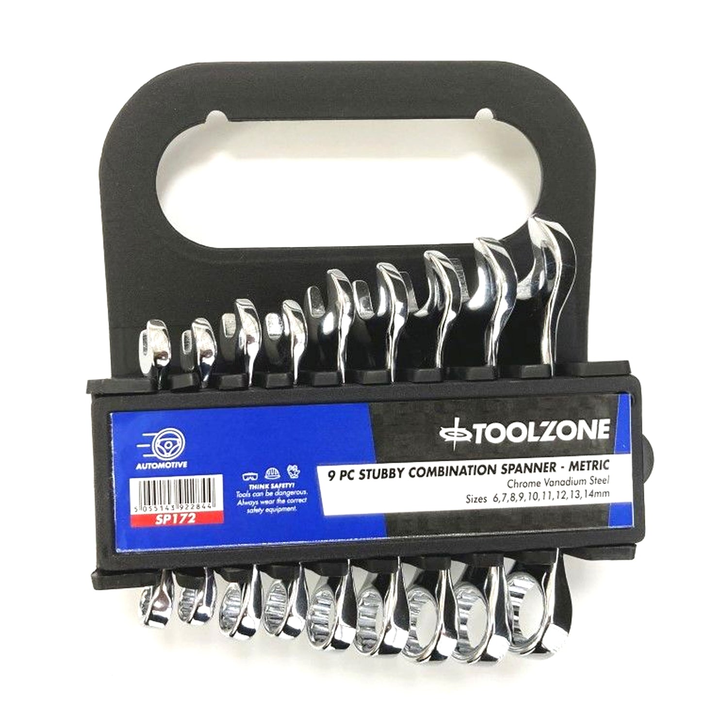 Toolzone Stubby Spanner Set 9pc 6-14mm Chrome Vanadium Fully Polished in Rack - Toolzone Kdpsp172