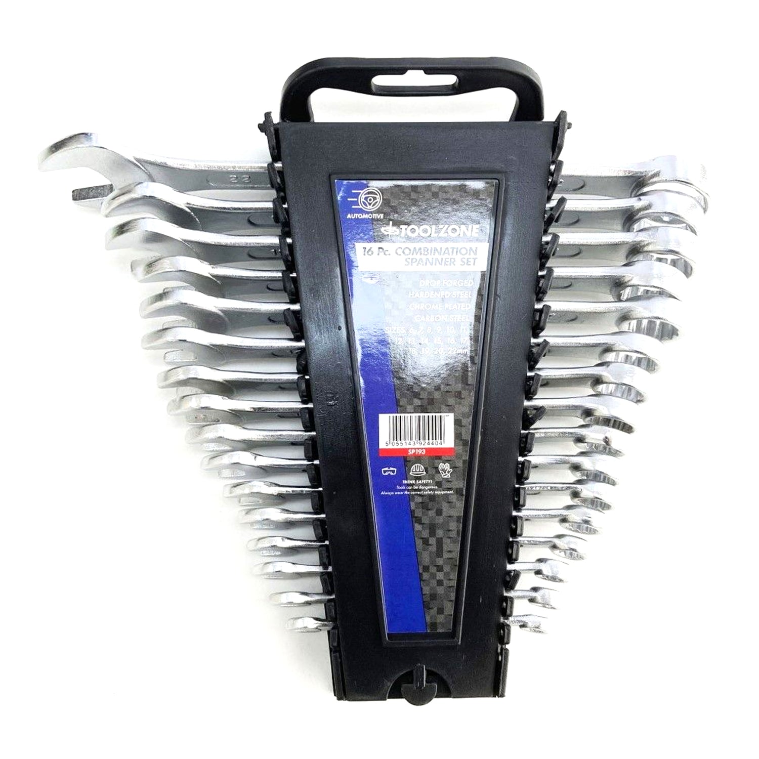 Toolzone Combination Spanner Set 16pc 6-22mm Drop Forged Chrome Plated - Toolzone Kdpsp193