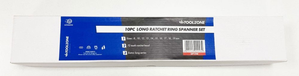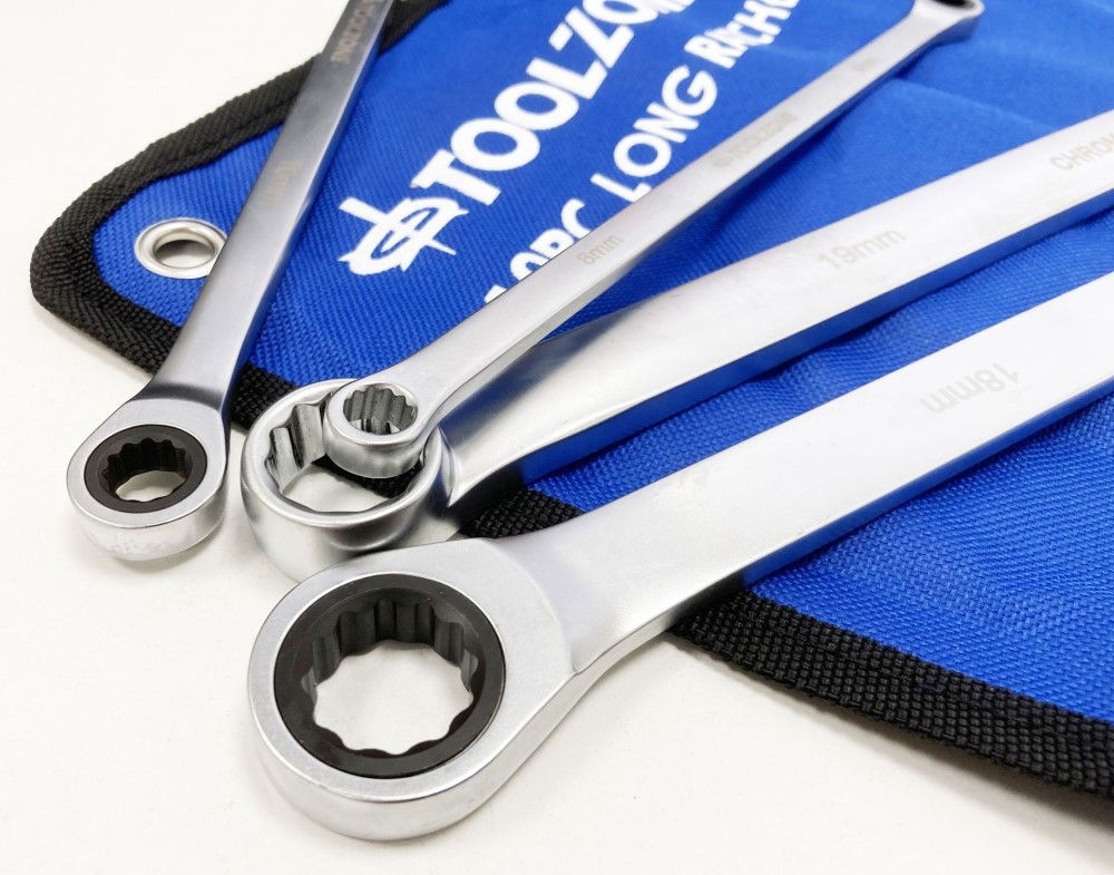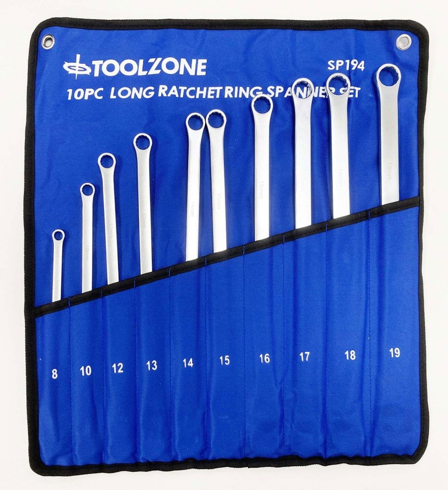 Toolzone Ratchet Spanner Set Long 10pc 8-19mm 72 Teeth 6150crv Mirror Polish - Toolzone Kdpsp194
