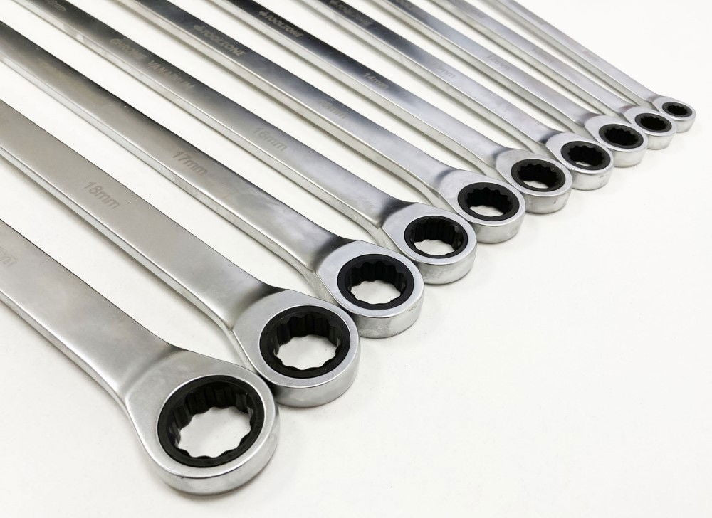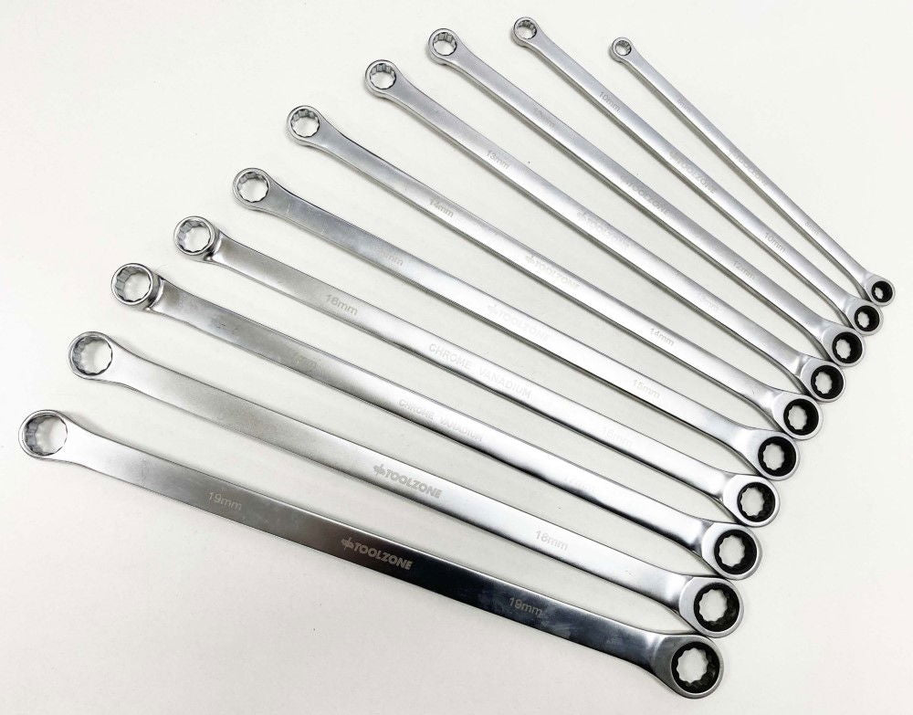 - Set includes 10 long ratchet spanners