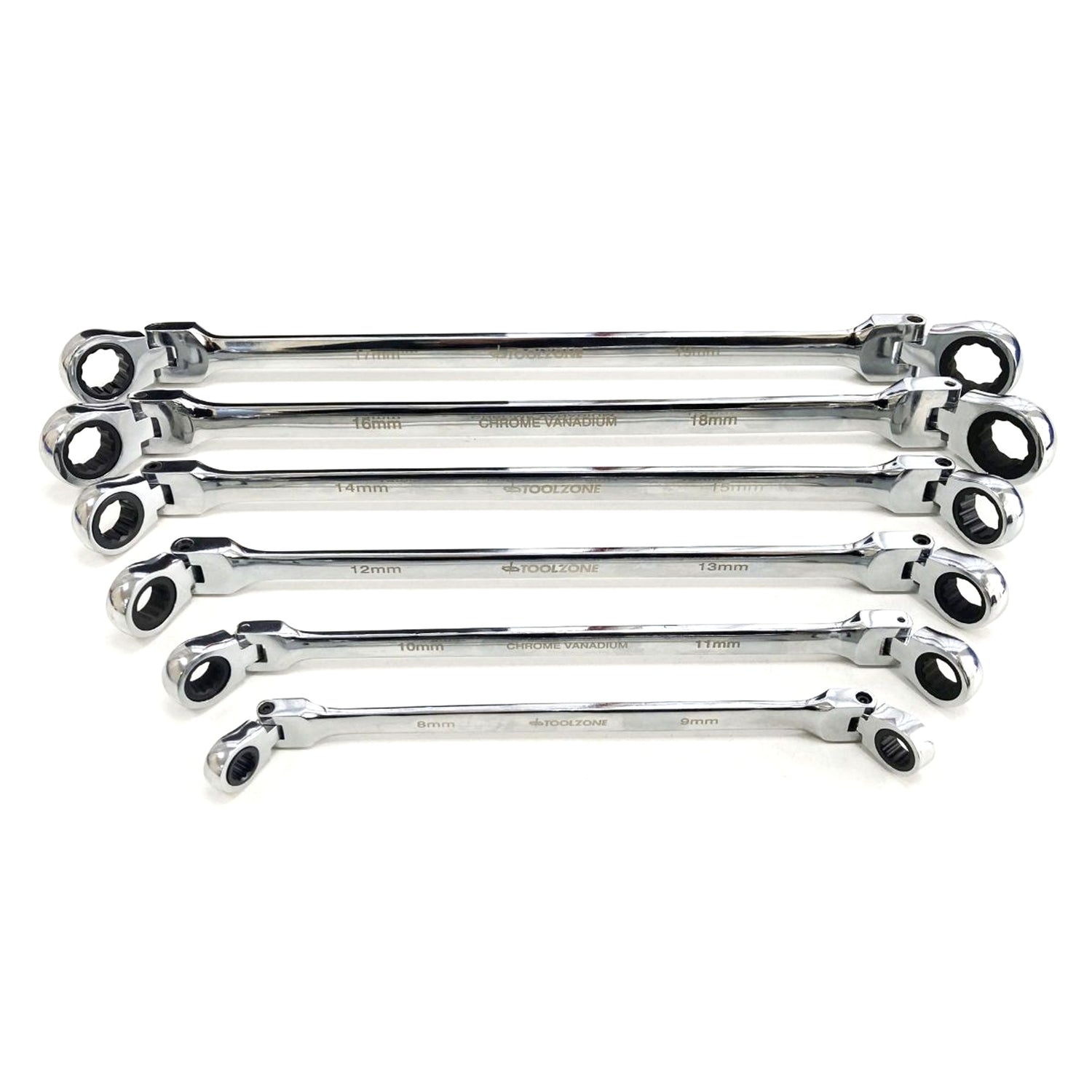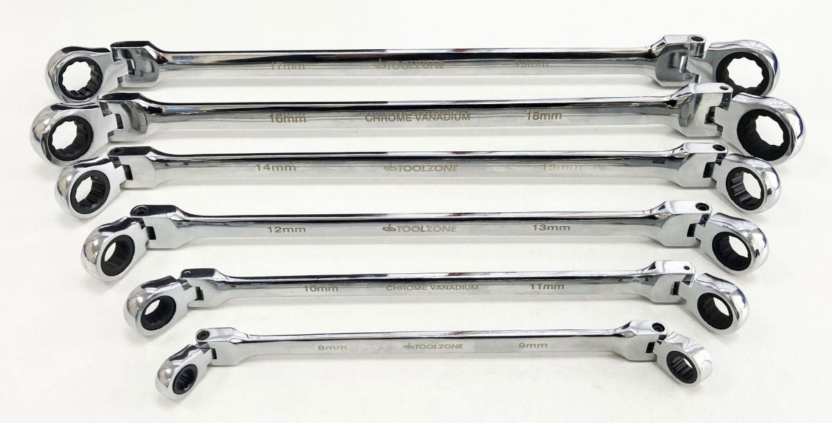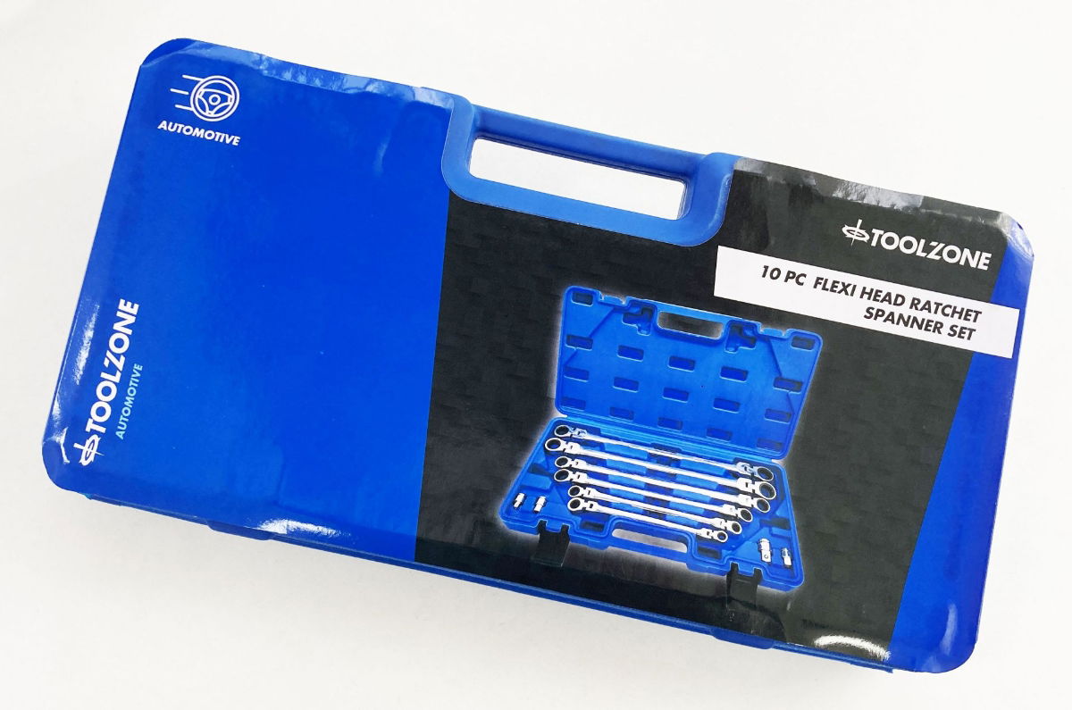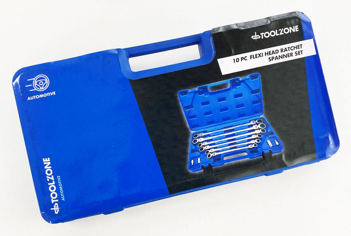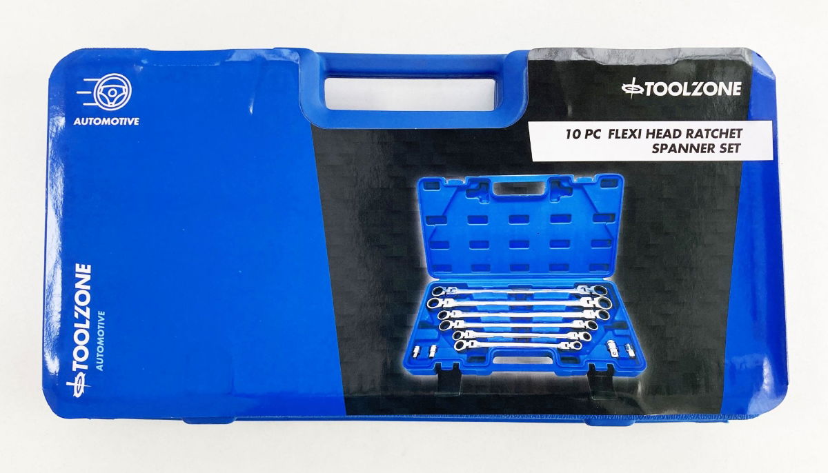 Toolzone Flexi Ratchet Spanner Set 10pc 8-19mm Drop Forged Mirror Polish - Toolzone Kdpsp198