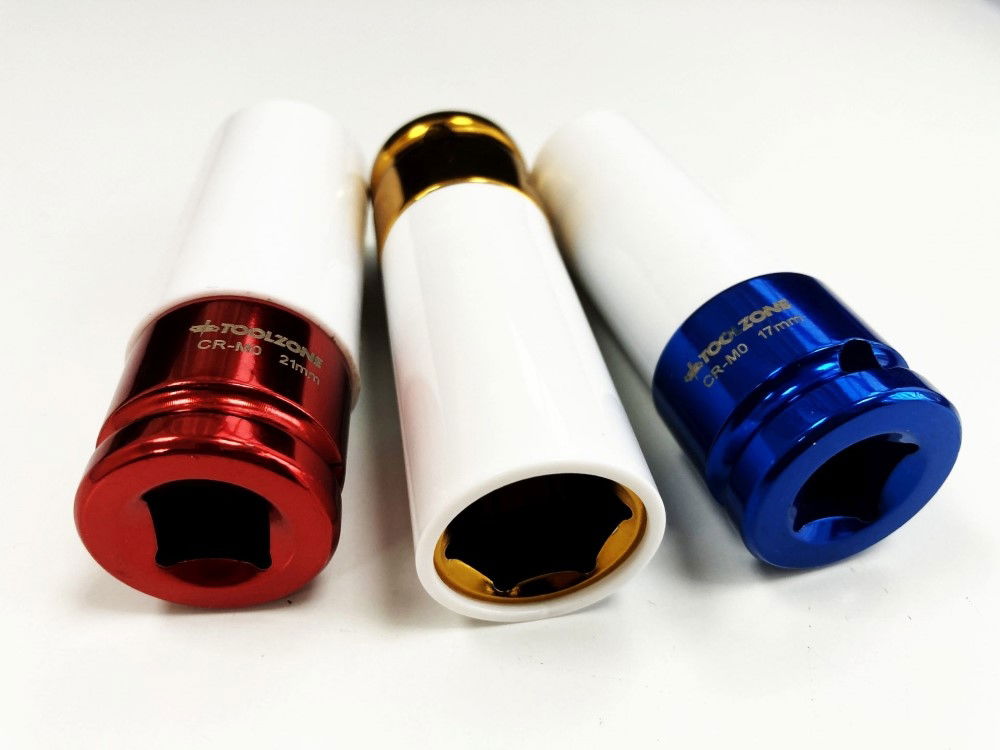 - Socket sizes: 17 mm, 19 mm, 21 mm
