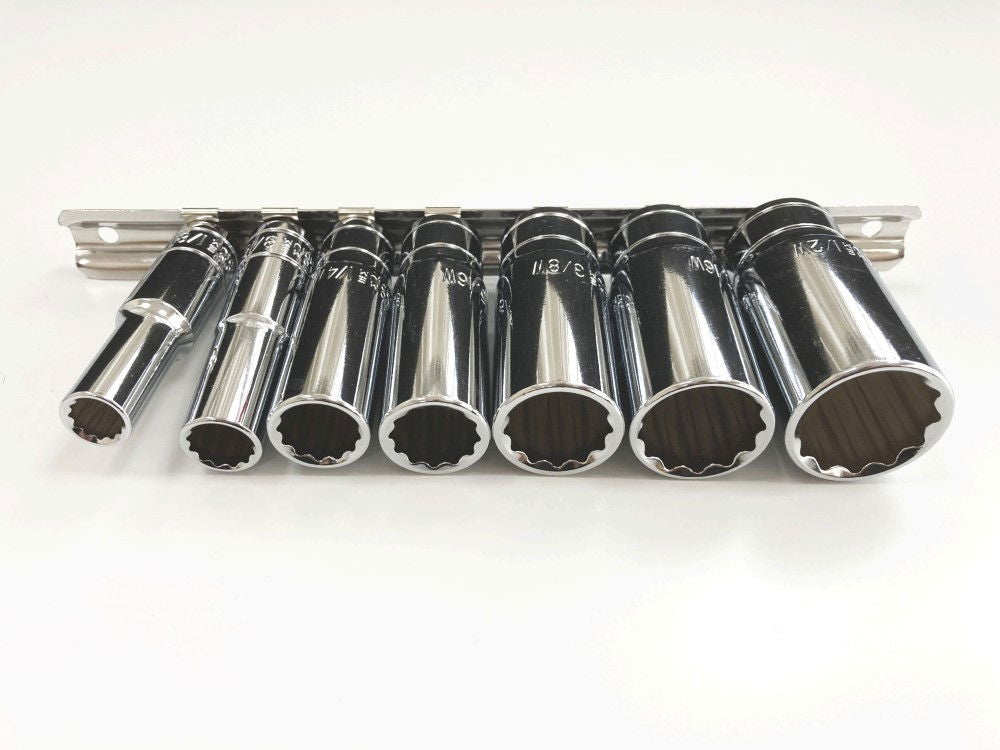 Toolzone Deep Socket Set 3/8 Drive 7pc Whitworth 1/8-1/2ww Crv on Rail - Toolzone Kdpss019