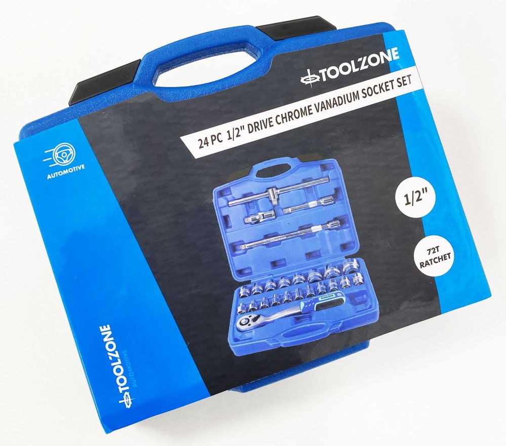 Toolzone Socket Set 1/2 Drive Pro Crv 24 Pieces 10-24mm 27mm 30mm 32mm - Toolzone Kdpss108