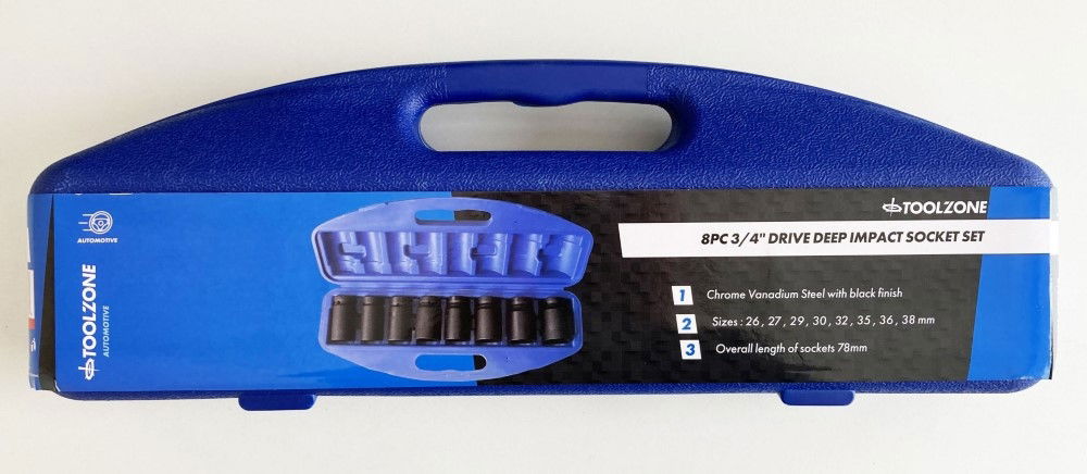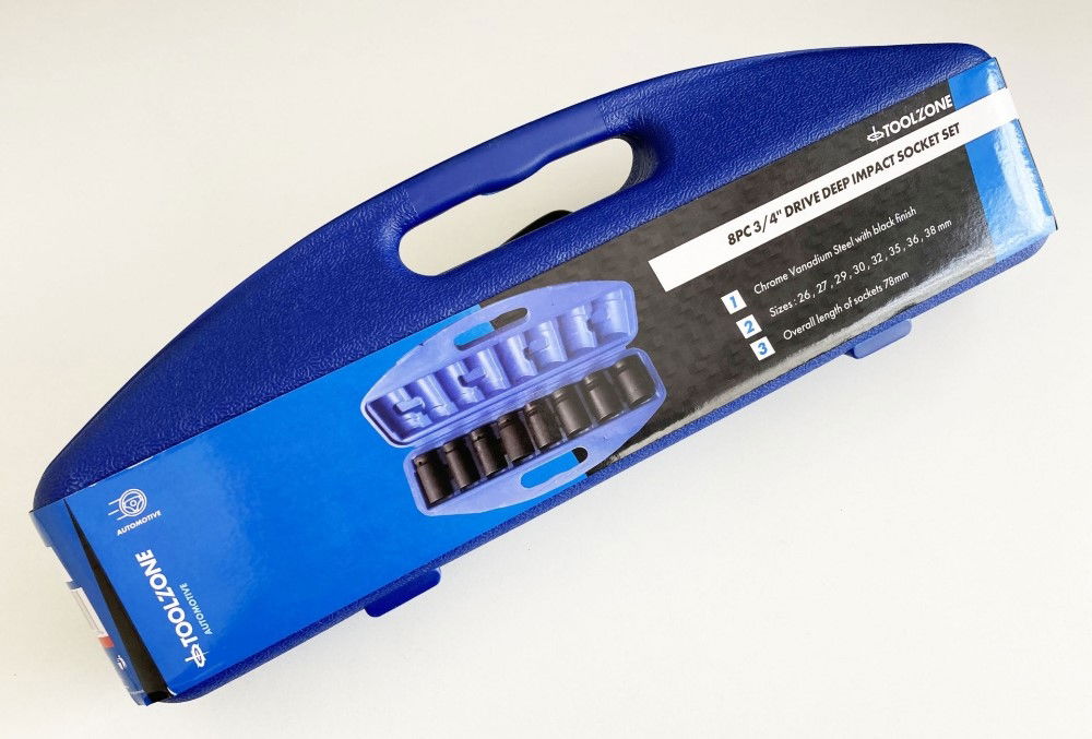 Toolzone Impact Socket Set 3/4 Drive Deep 8 Pieces 26-38mm - Toolzone Kdpss130