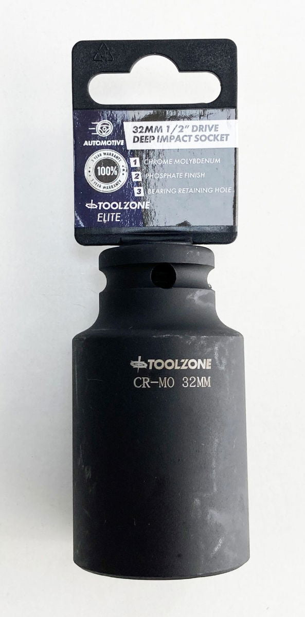 Toolzone Impact Socket 1/2 Drive Deep 32mm Crmo - Toolzone Kdpss133