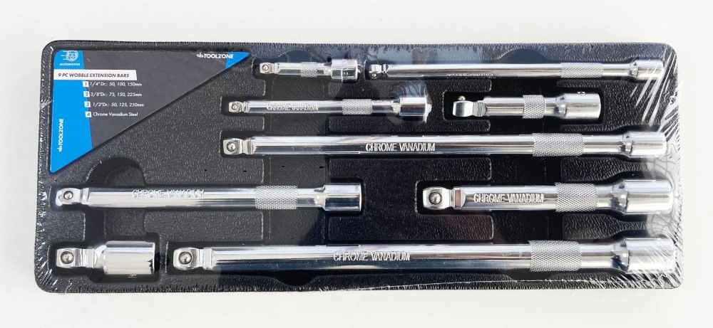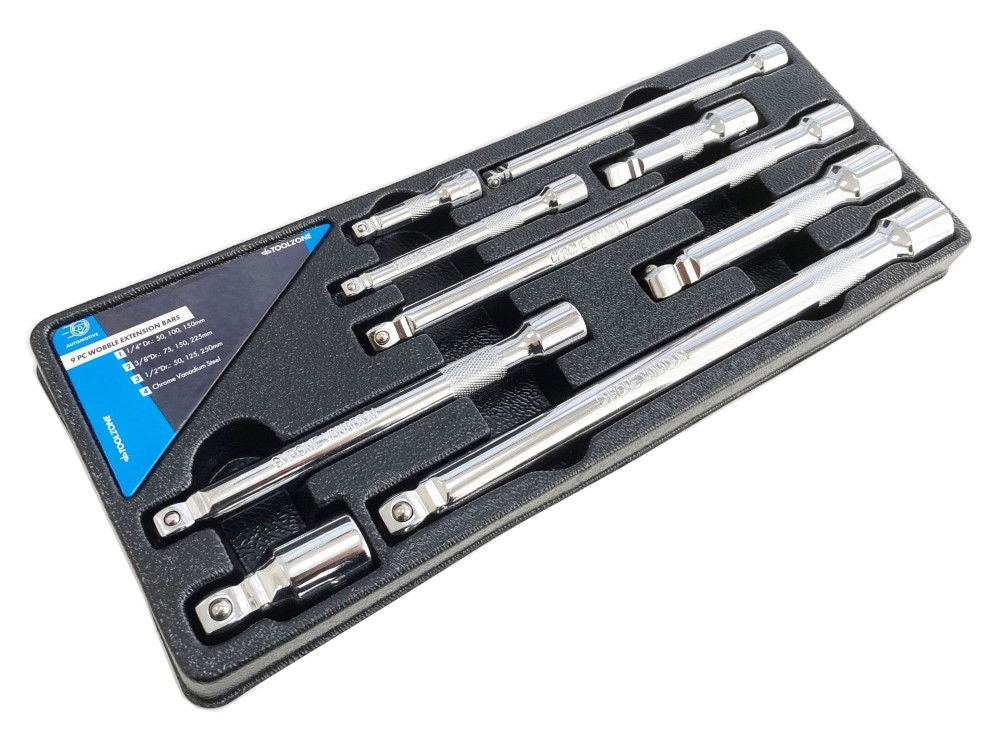 Toolzone Extension Bar Set Wobble Crv 9 Pieces 1/4 3/8 1/2 Drive - Toolzone Kdpss146
