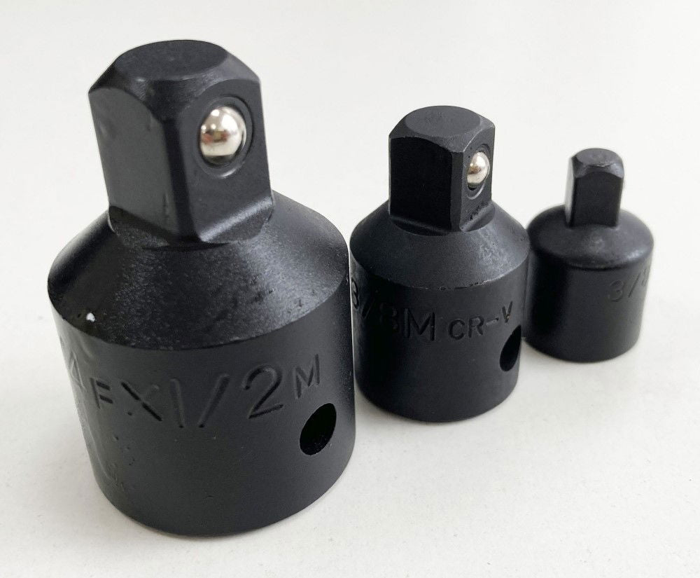 KDP-SS169This 3-piece set of impact reducer adaptors is made from chrome vanadium steel with a black finish. The set includes a selection of adaptor sizes for common drive conversions. Package dimensions are 10 x 18 x 4 cm.