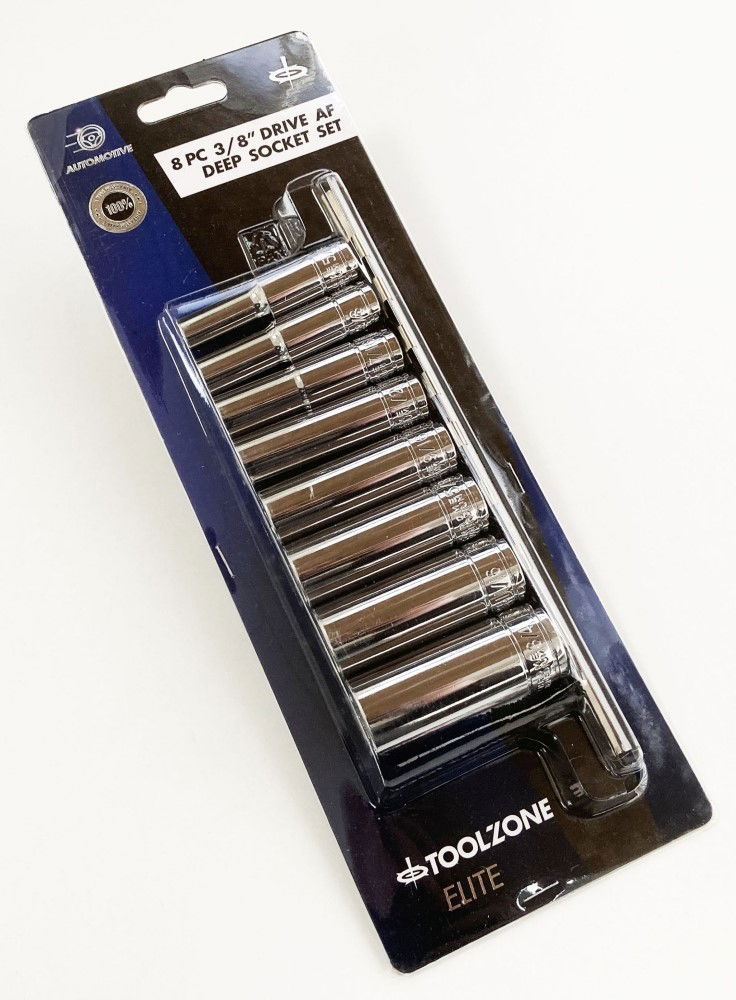 Toolzone Deep Socket Set 8 Pieces 3/8 Drive Af Crv 5/16-3/4 - Toolzone Kdpss303