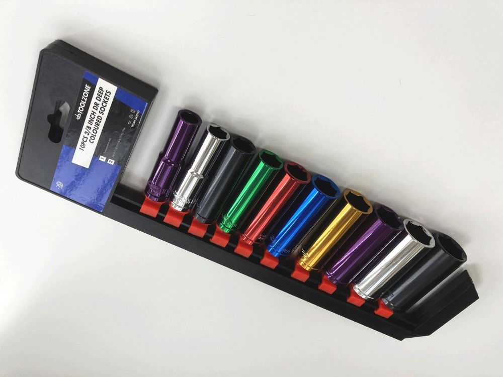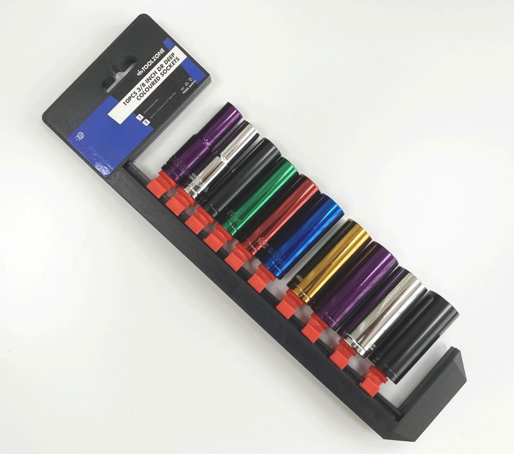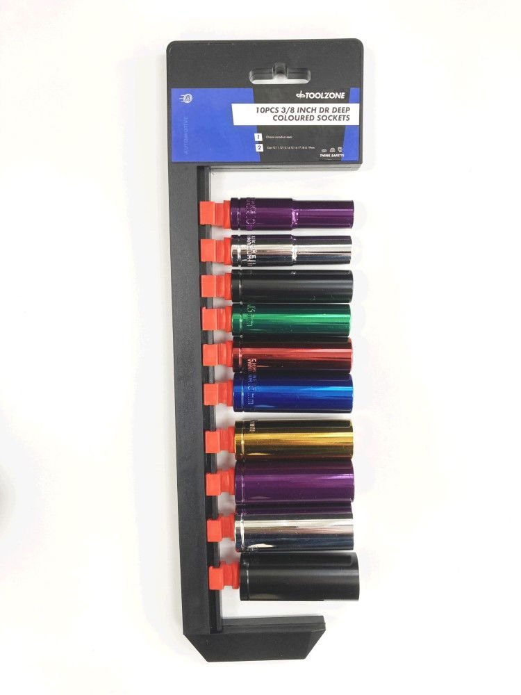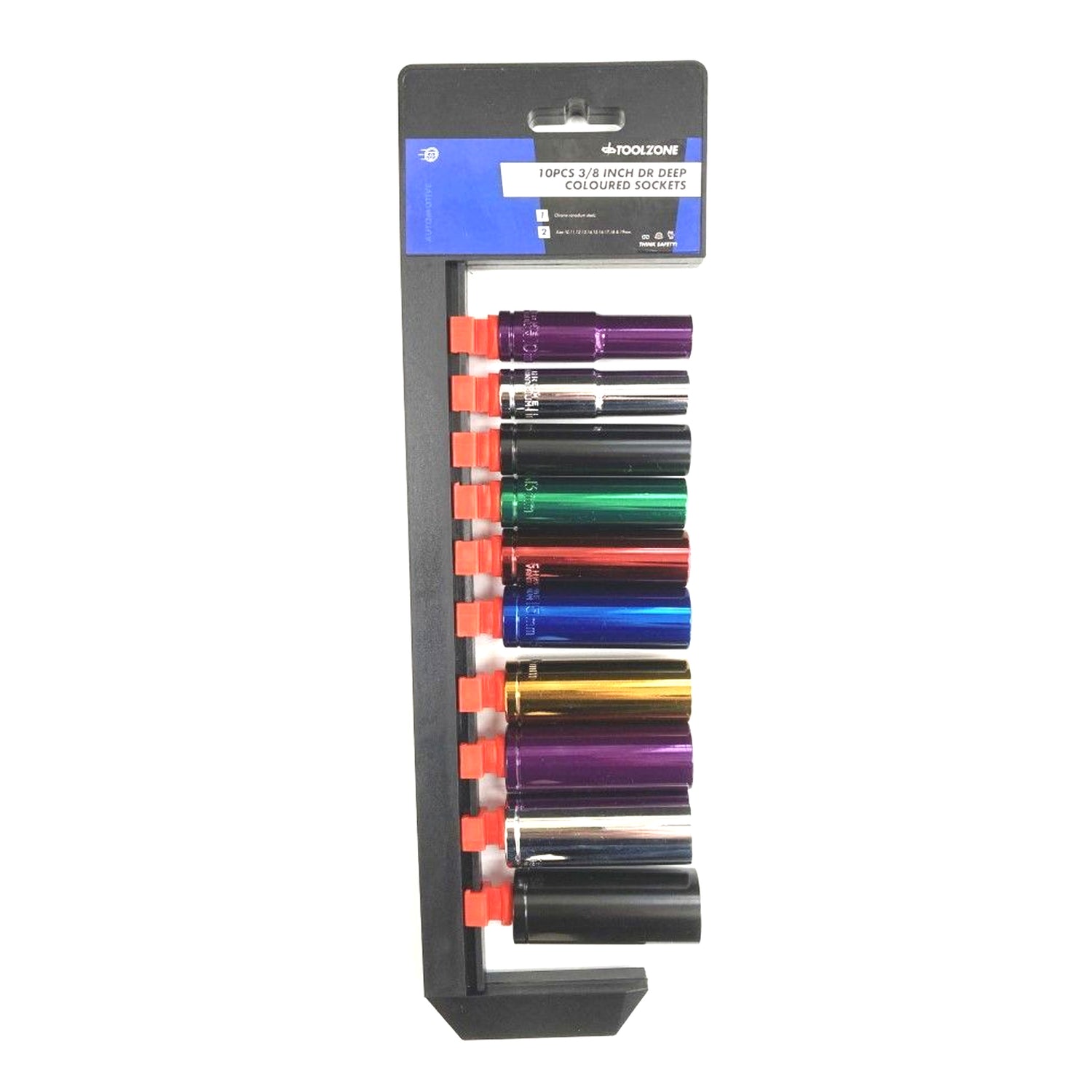 Toolzone Deep Socket Set 10 Pieces 3/8 Drive mm Crv Colour Coded 10mm-19mm - Toolzone Kdpss315