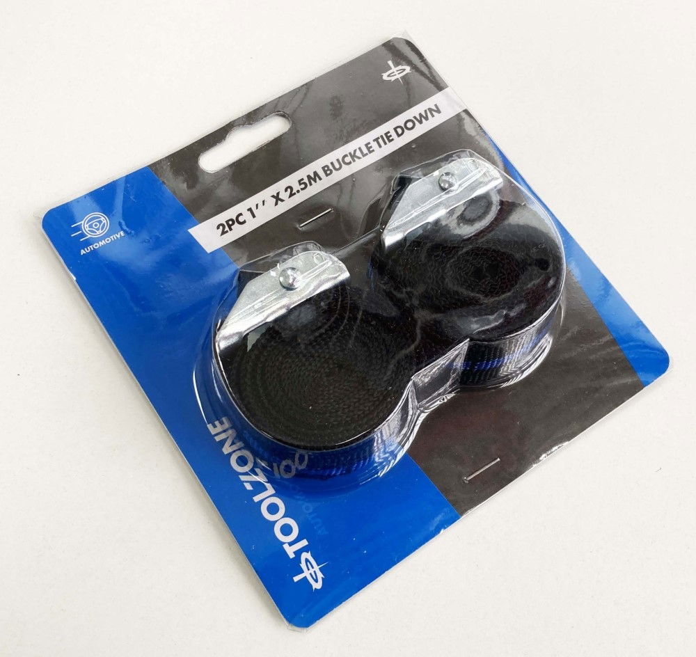 Toolzone Tie Down Buckle Type 2pc 2.5m 180-200kg Capacity 250kg Breaking Strain - Toolzone Kdptd028