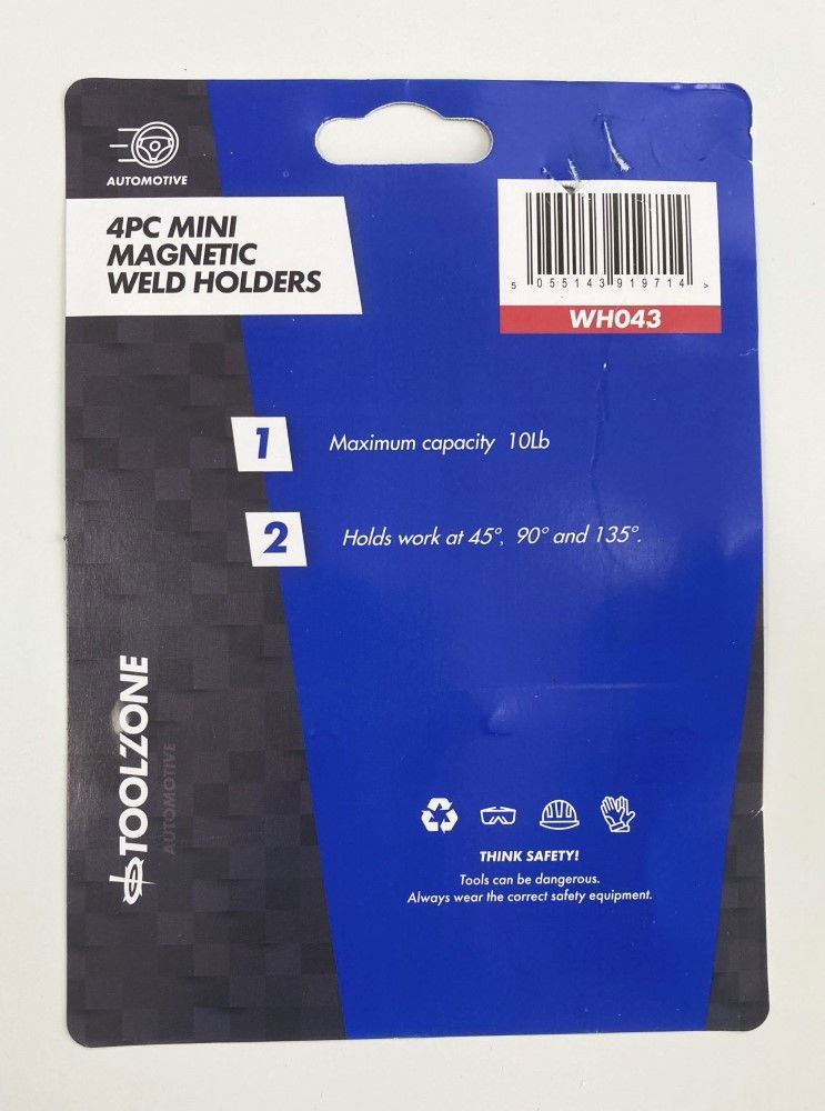 Toolzone Magnetic Weld Holders Mini 4 Piece 10lb 60x50x10mm - Toolzone Kdpwh043